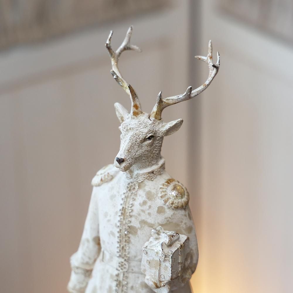 プレゼントを小脇に抱えた鹿の紳士のオブジェです。
