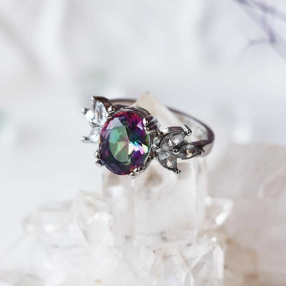 A beautiful ring featuring iridescent rainbow glass.