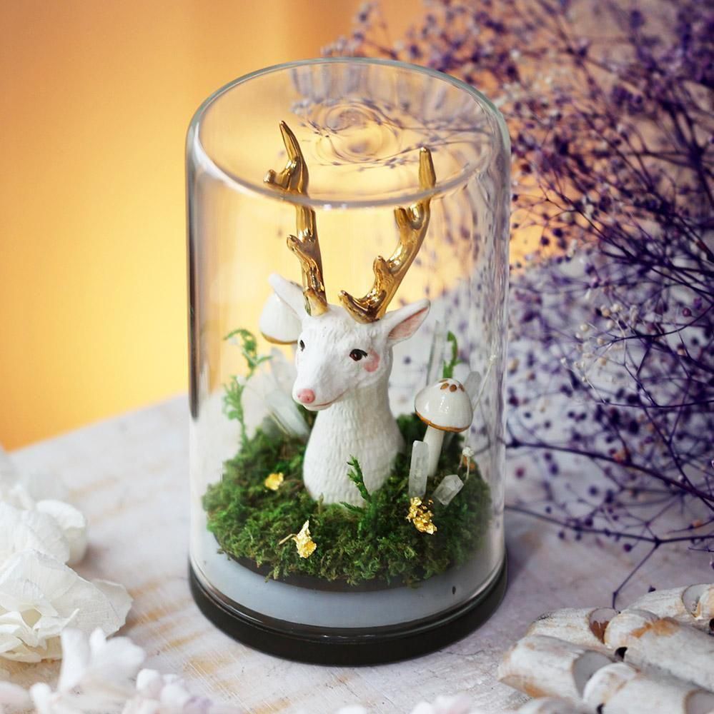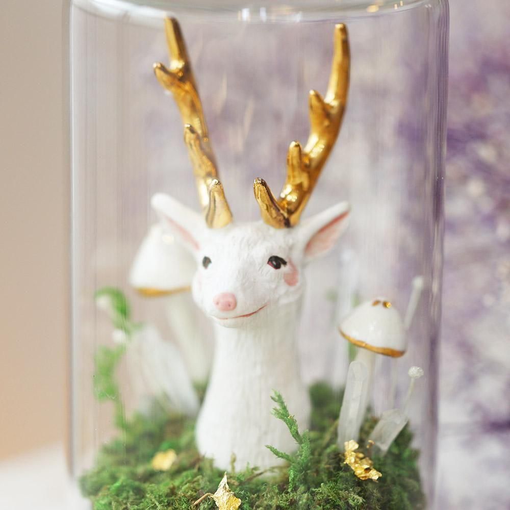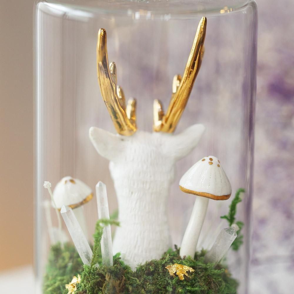 テラリウム「キノコと水晶のテラリウム・白鹿」