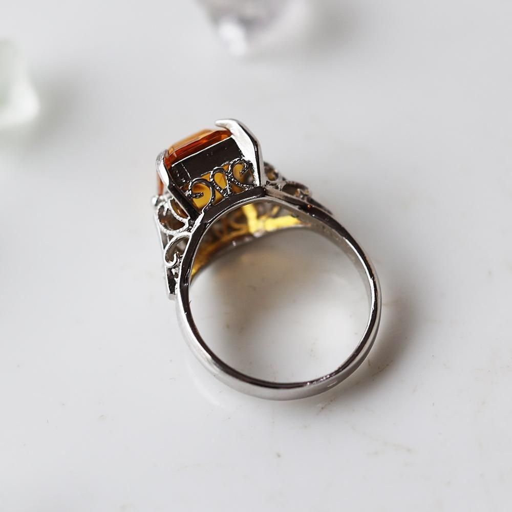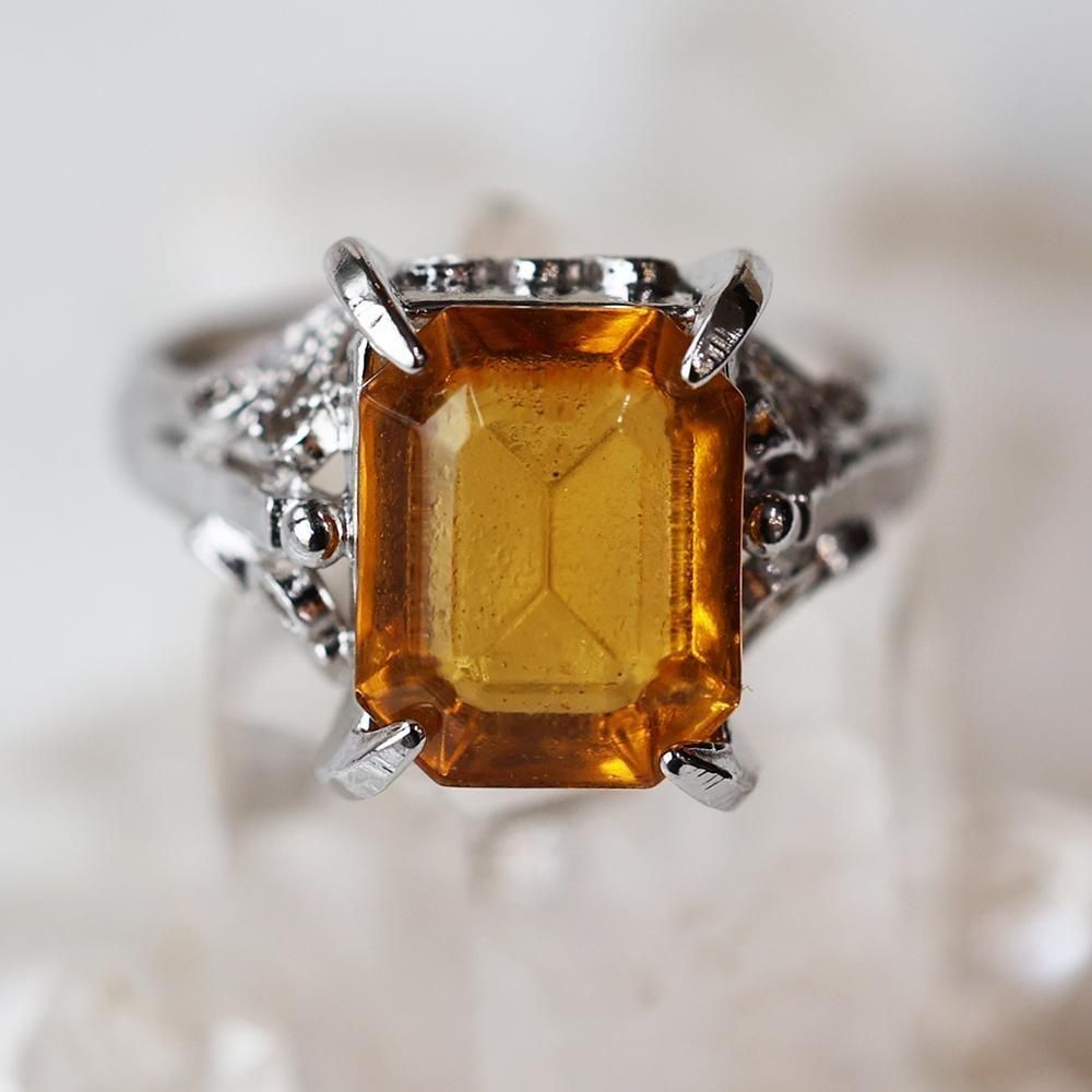 鮮やかな蜂蜜色の硝子ストーンがあしらわれた指輪です。