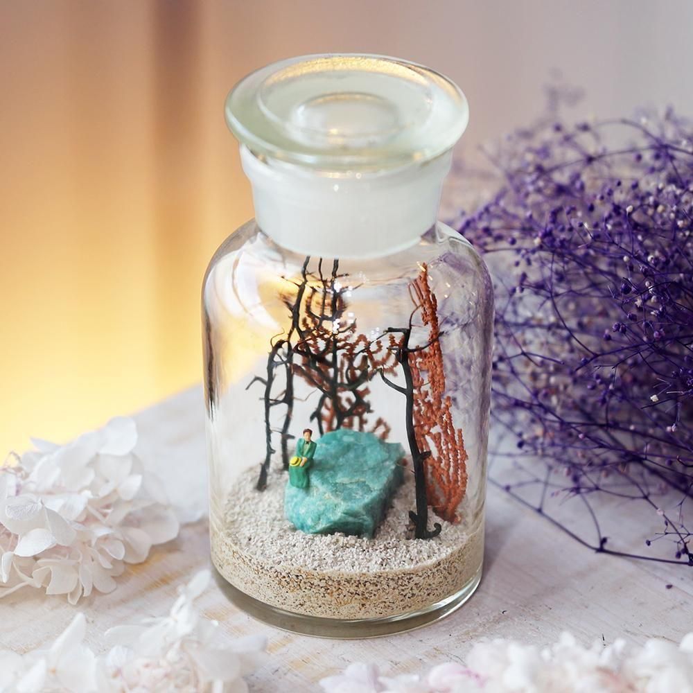 鉱物ジオラマ瓶(薬瓶・大)「待ち人」