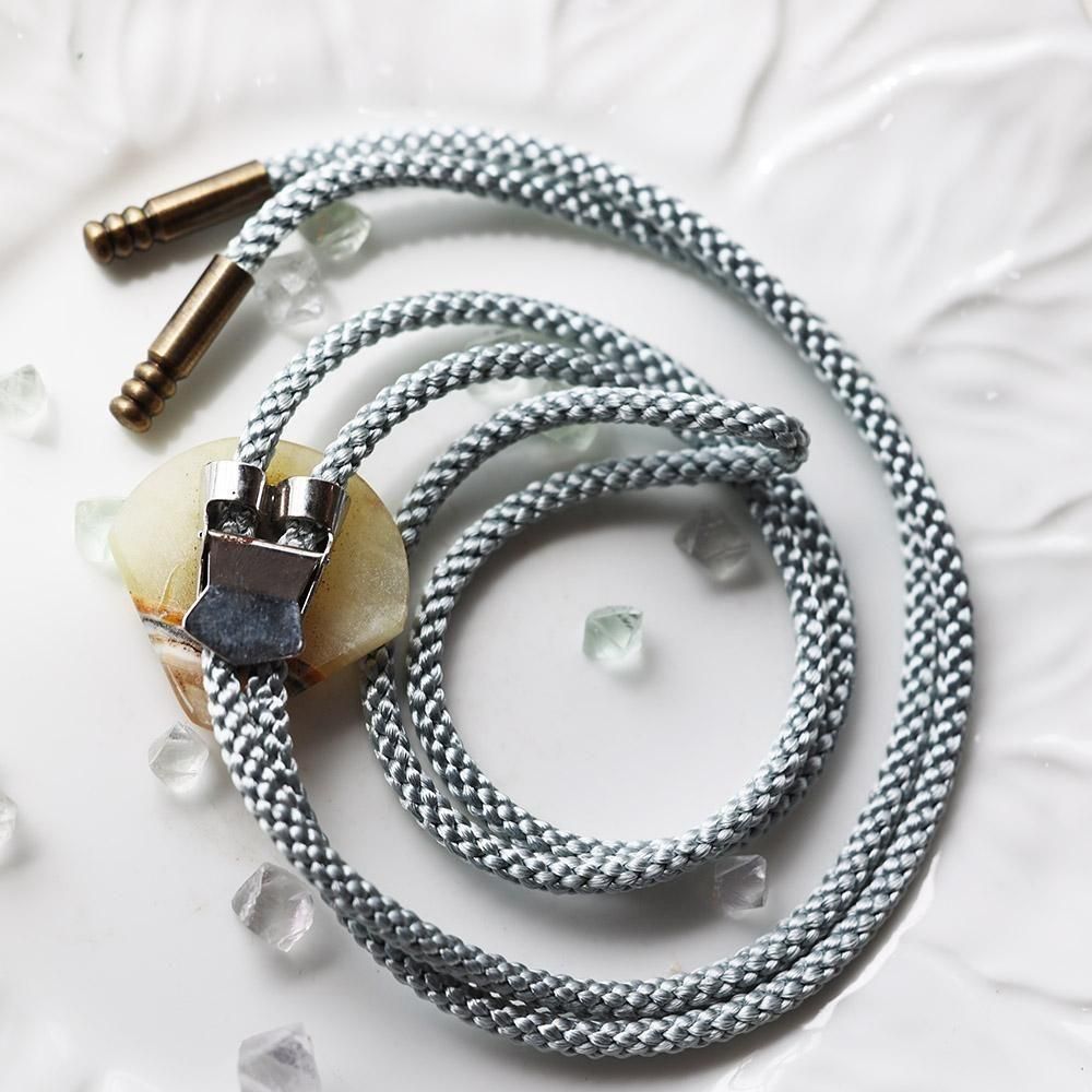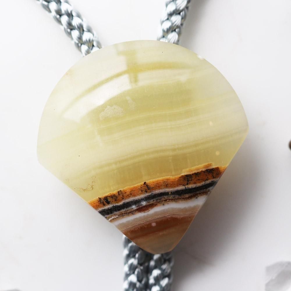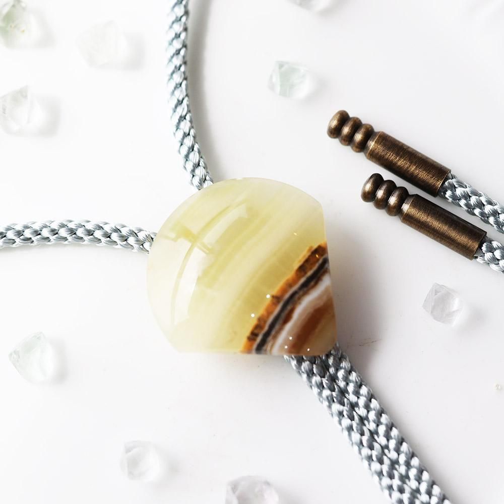 A vintage bolo tie featuring striped agate in a charming retro style.