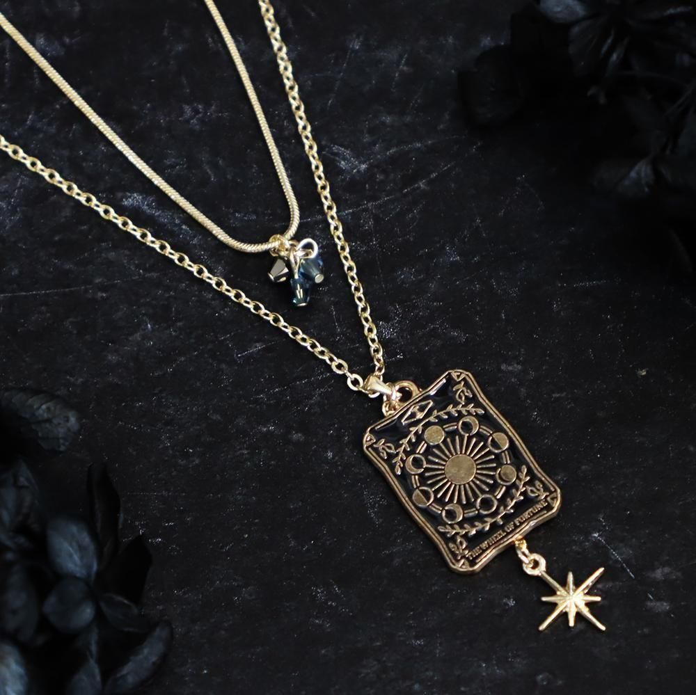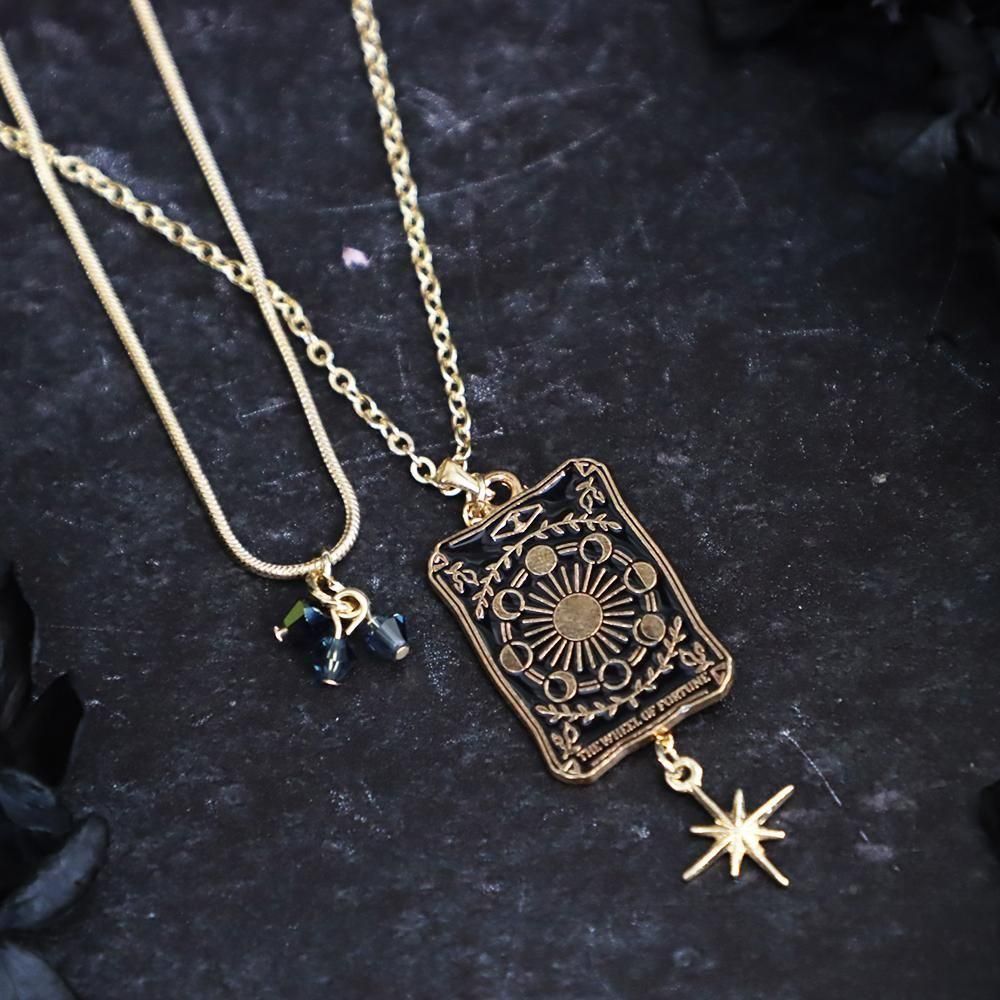 黒とゴールドのデザインが素敵なタロットカードのネックレスです。