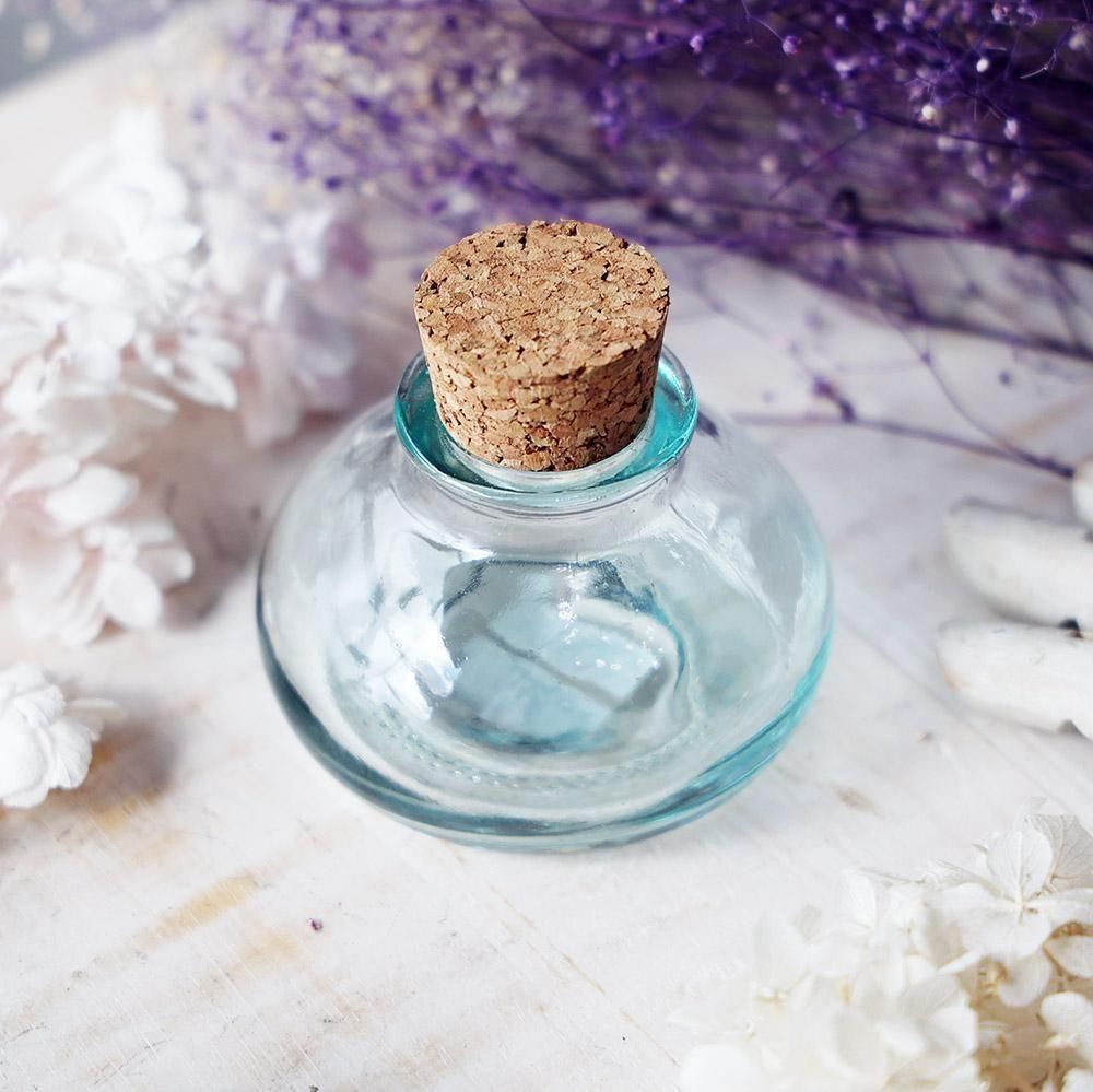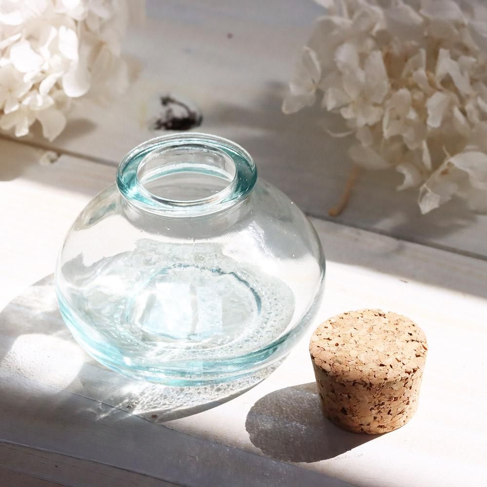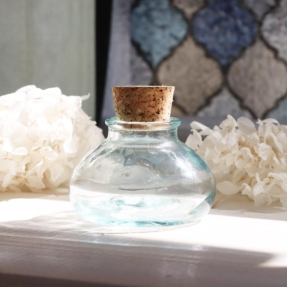 リサイクルガラスを使用した小さなコルク瓶です。