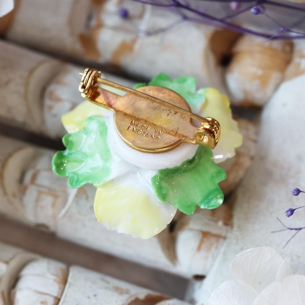 淡い色合いが可愛い、お花のデザインの陶ブローチです。