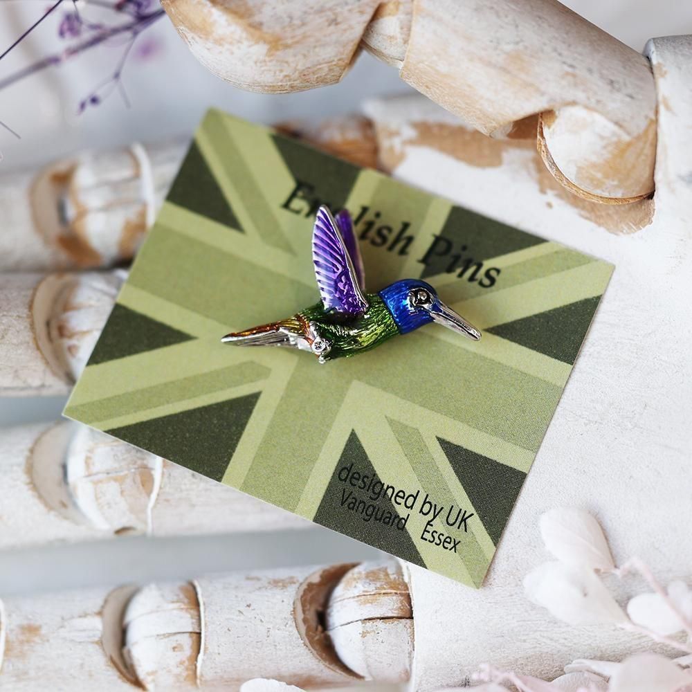 ハチドリのデザインがかわいい、英国製のピンバッジです。