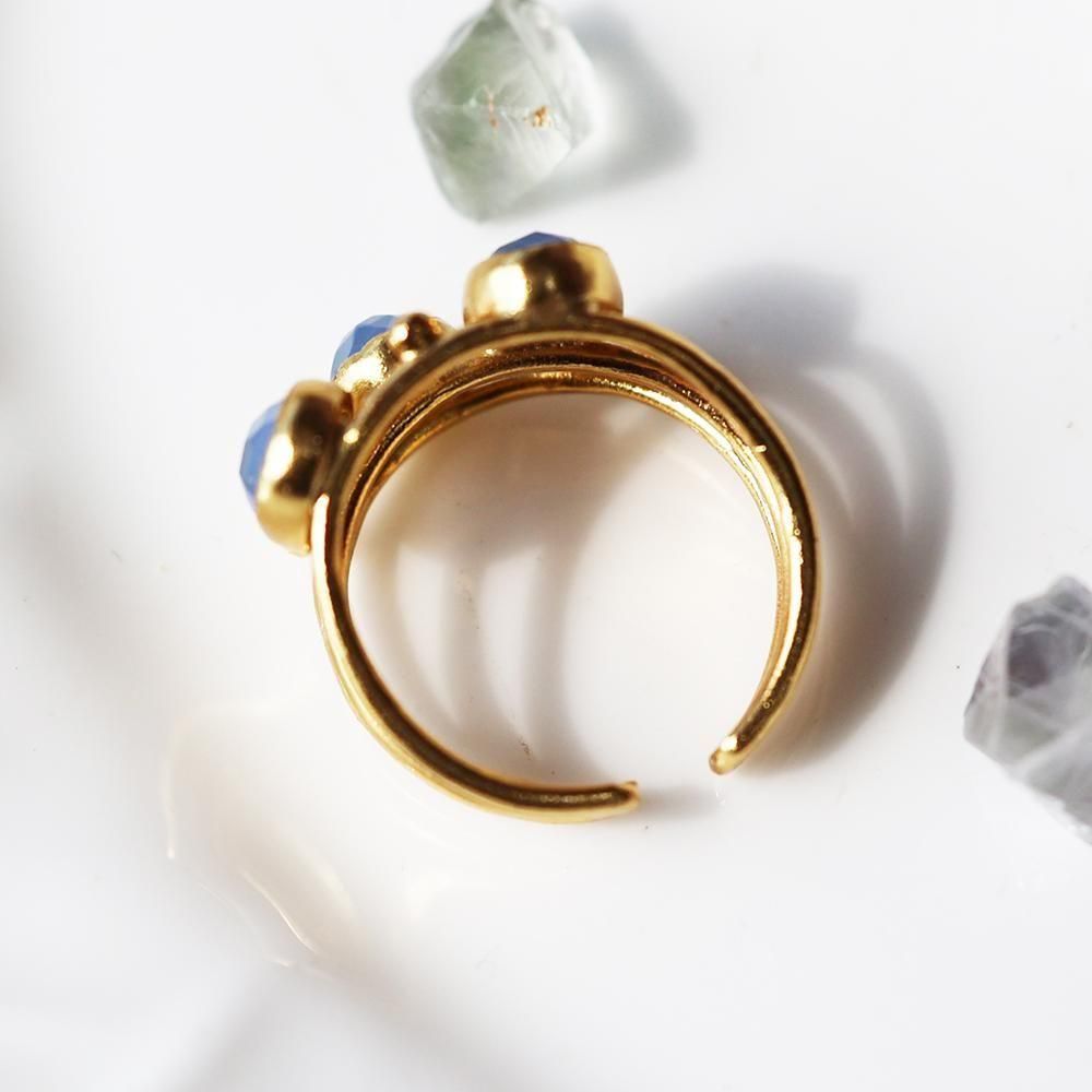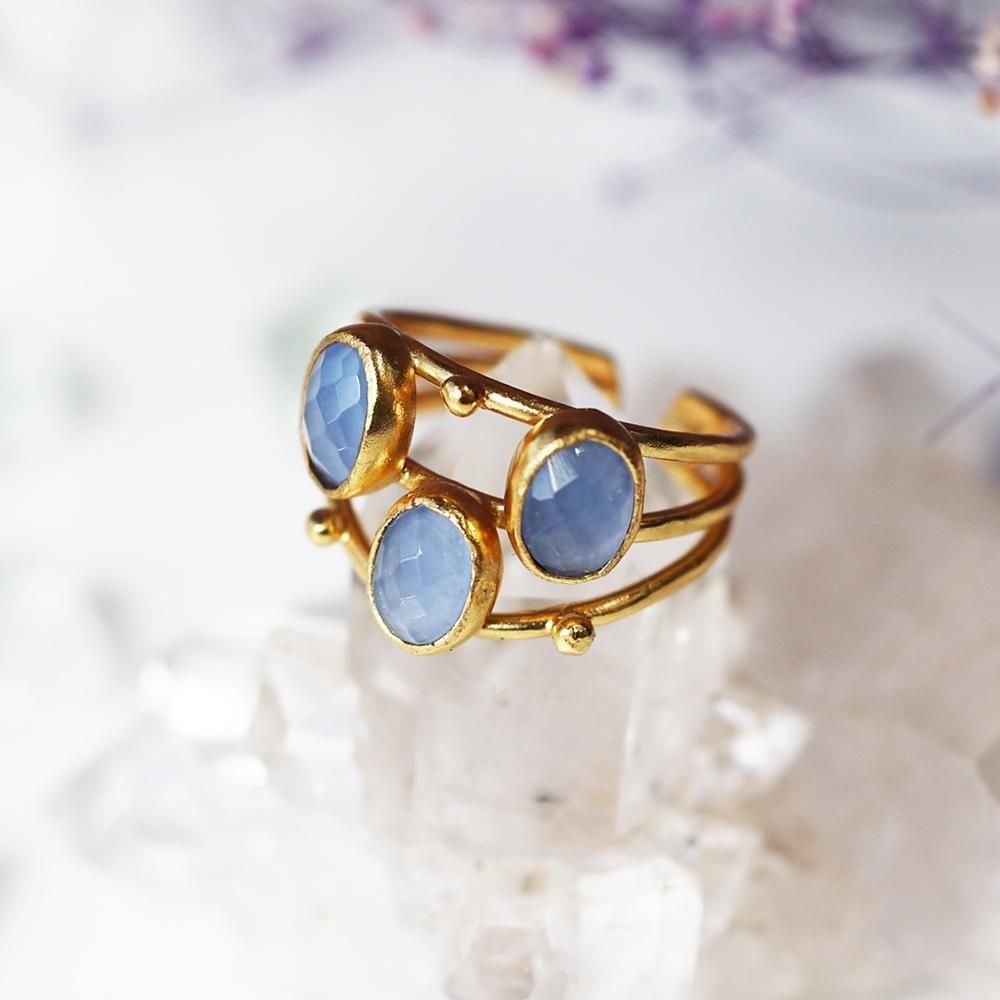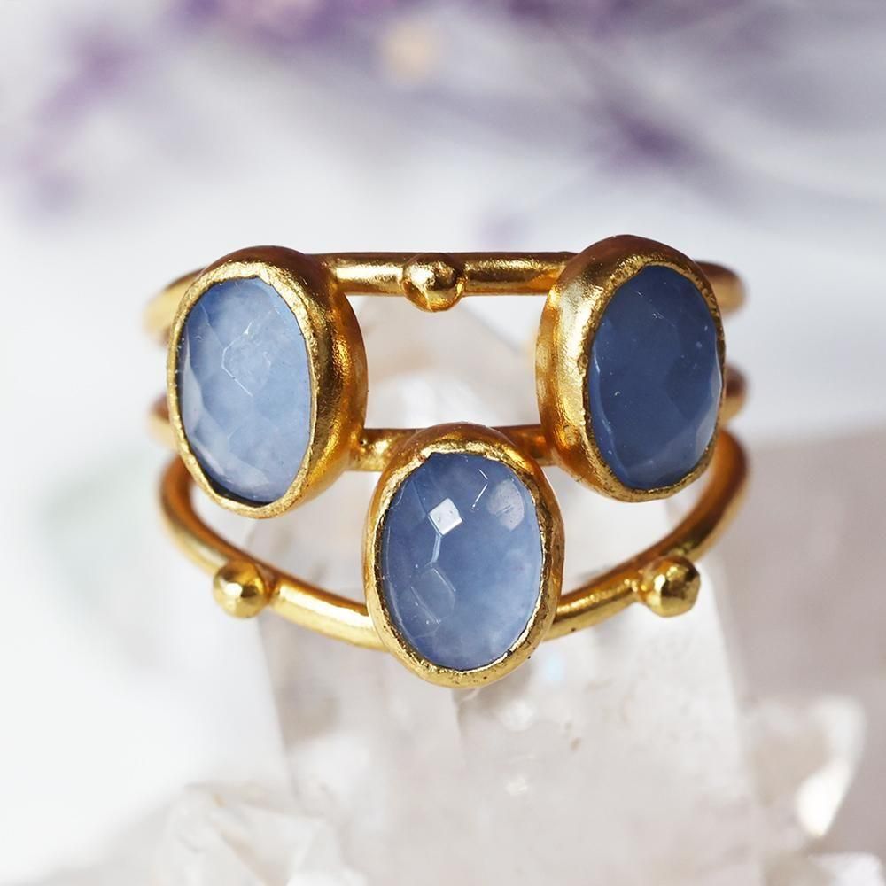 3粒の綺麗なブルーカルセドニーが使用された指輪です。