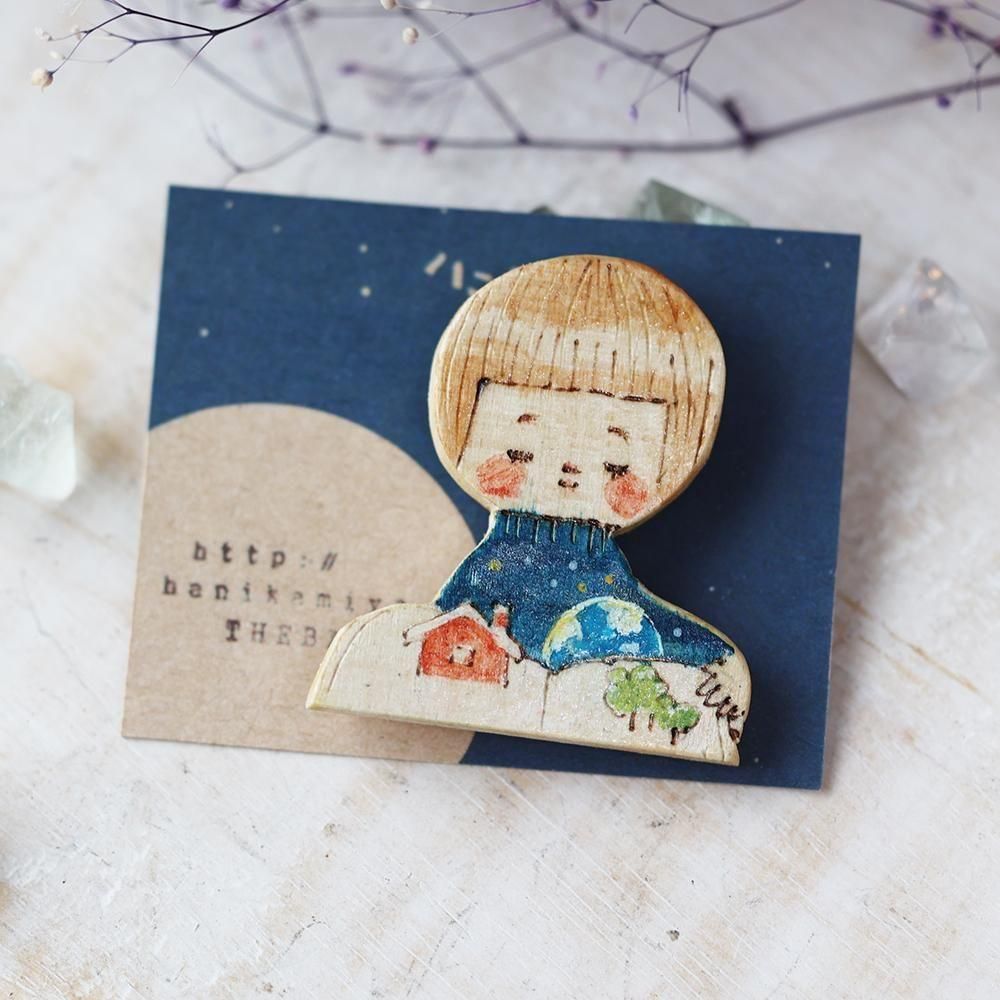 木の暖かみが感じられる木製ブローチです。