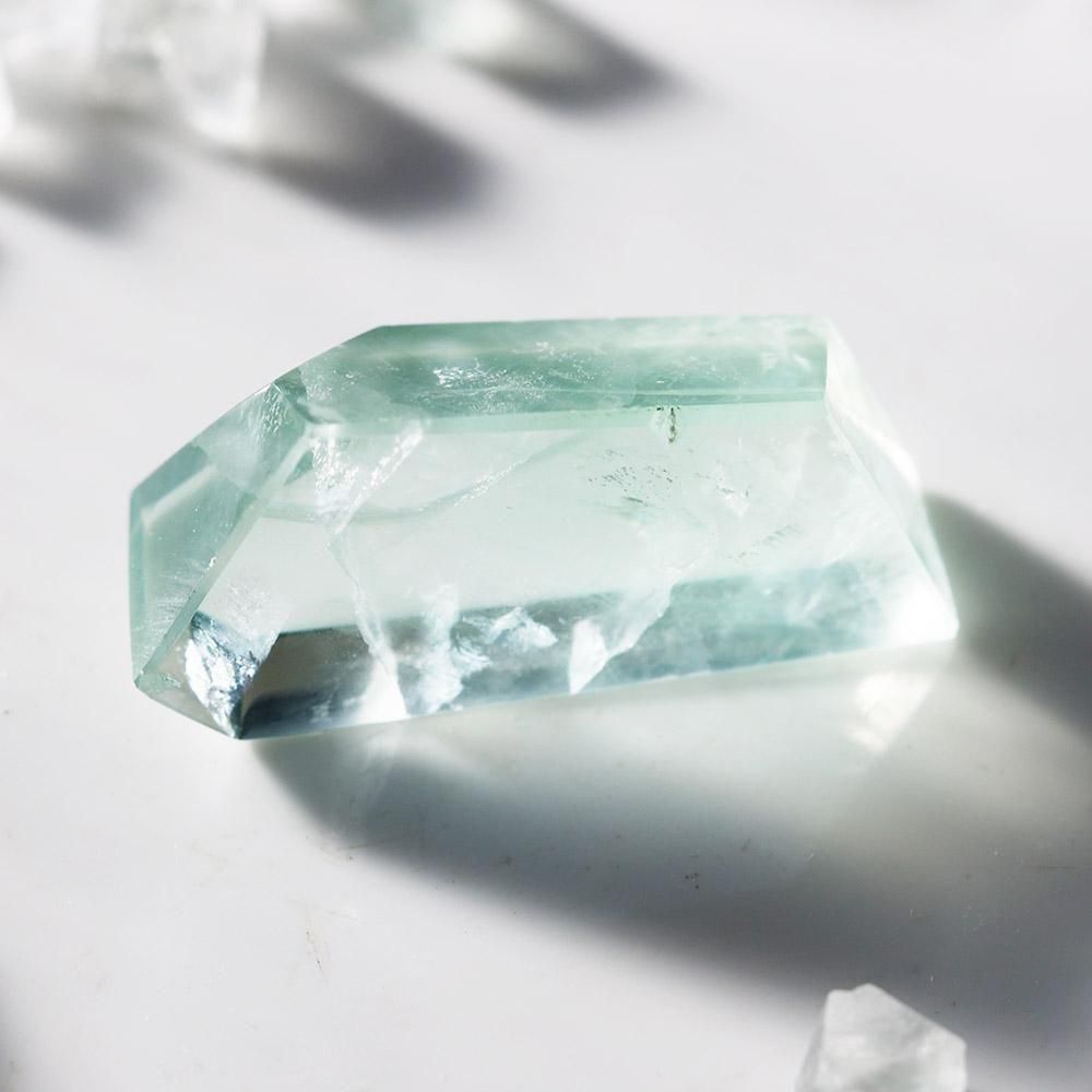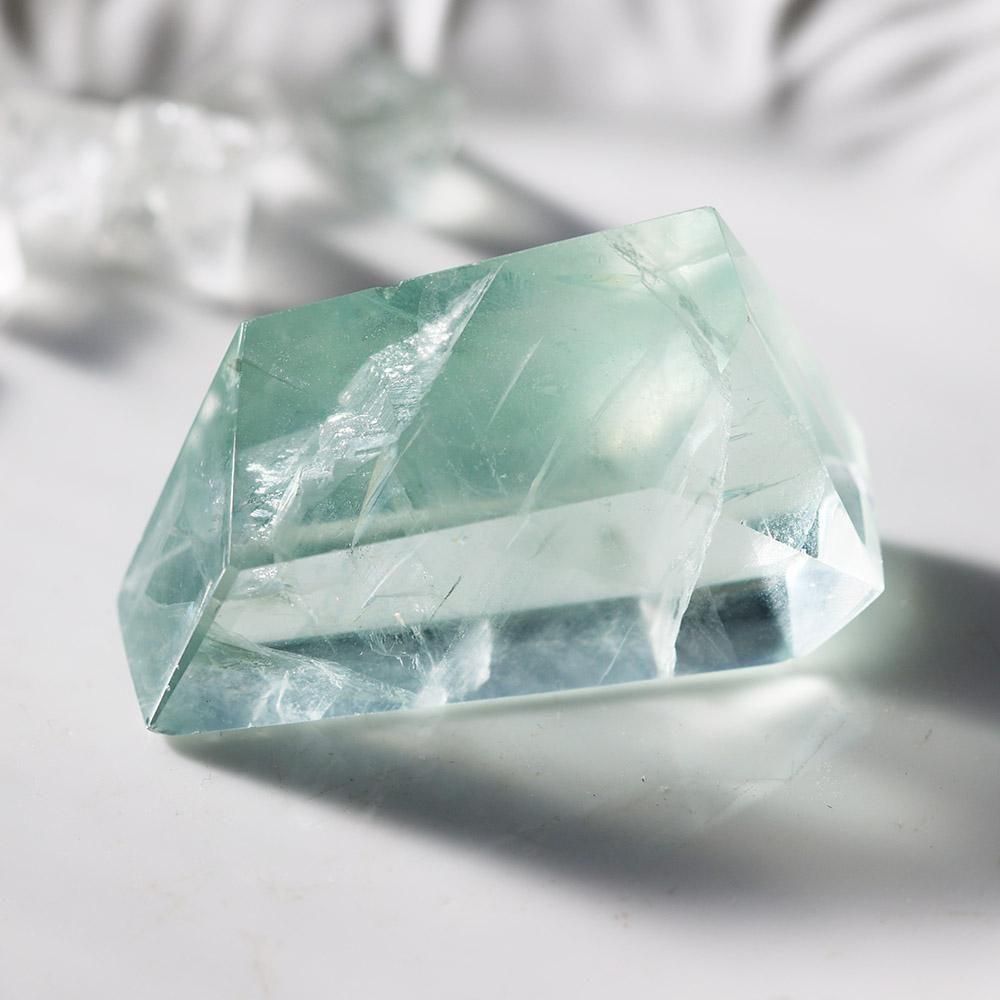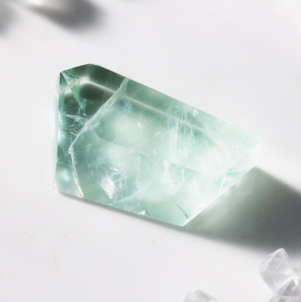 かわいい形にカットされた、薄緑色の中国産フローライトです。