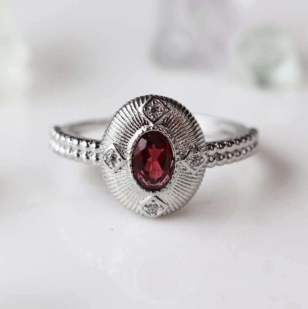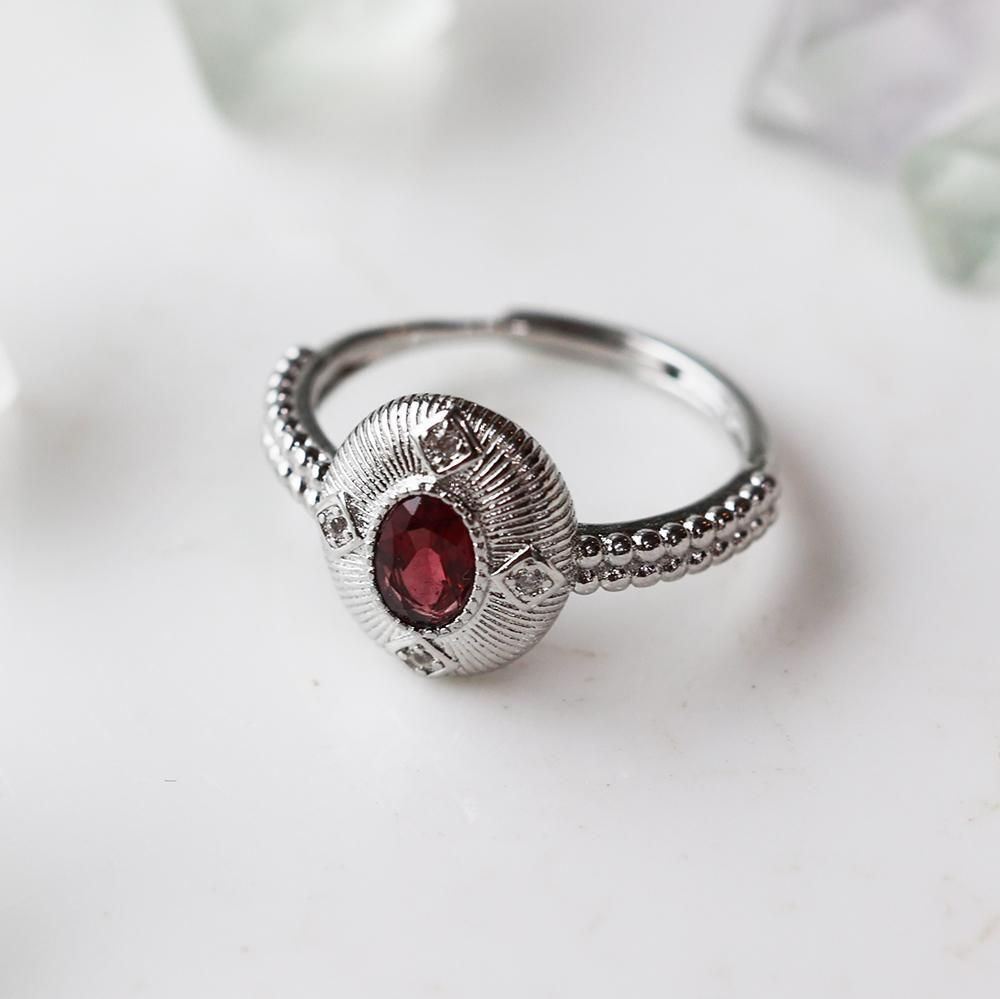 落ち着いた赤色のガーネットが素敵な指輪です。