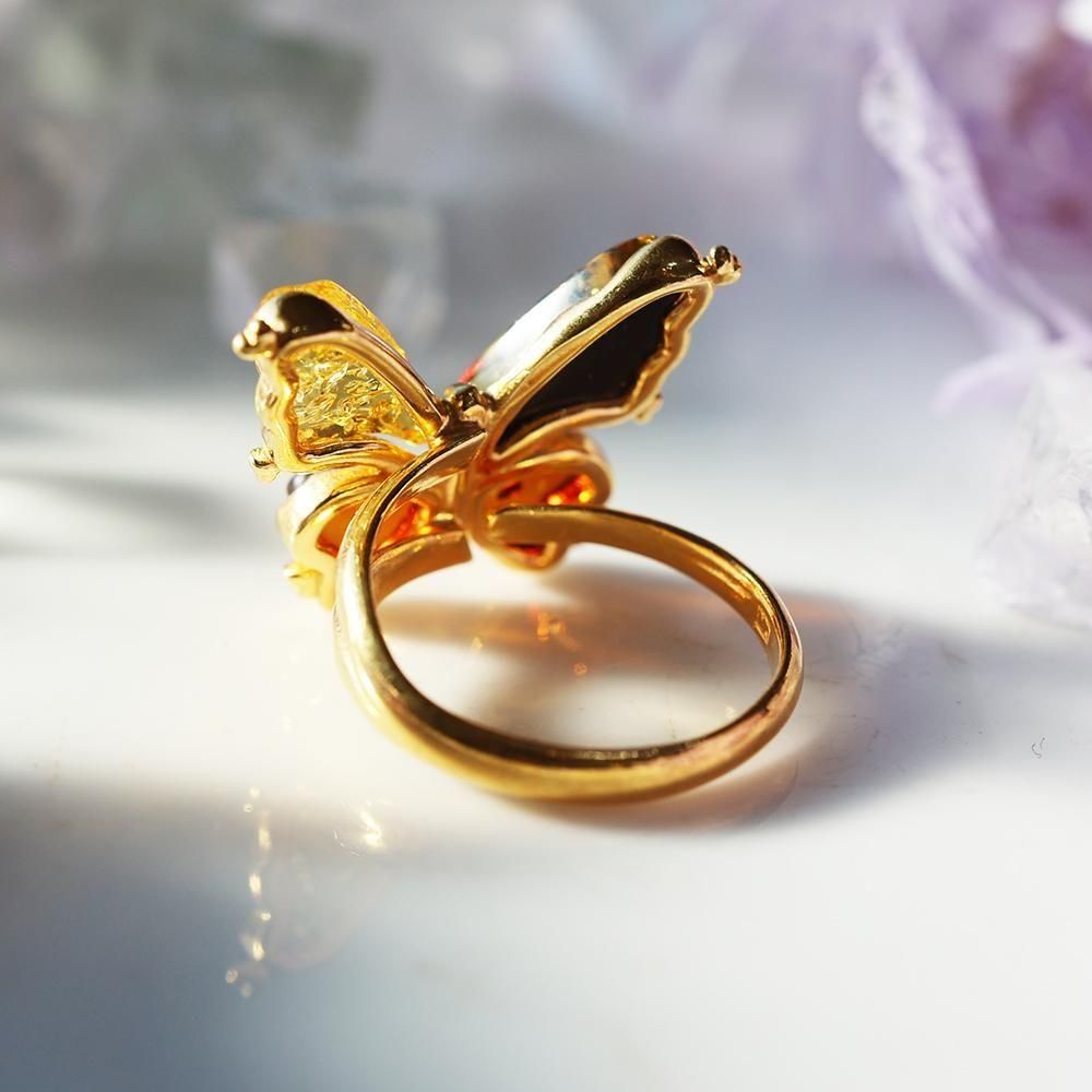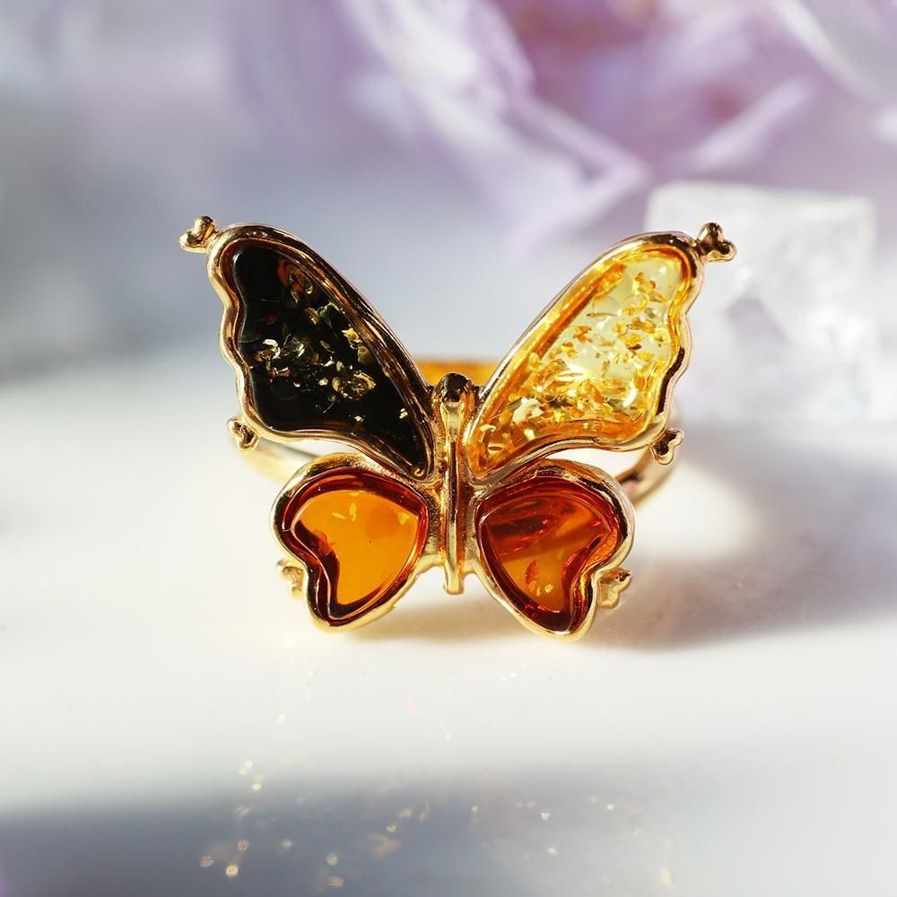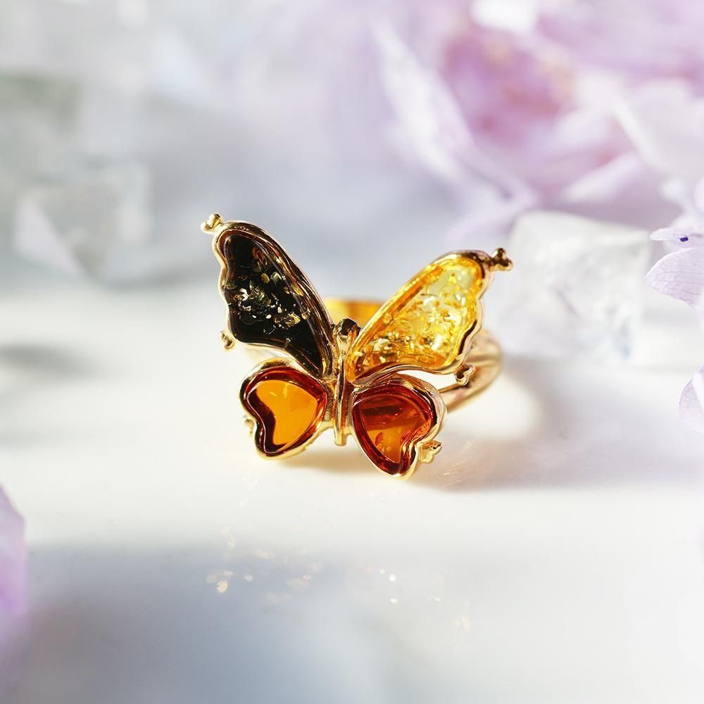 蝶々のデザインが可愛い、ポーランド産琥珀の指輪です。