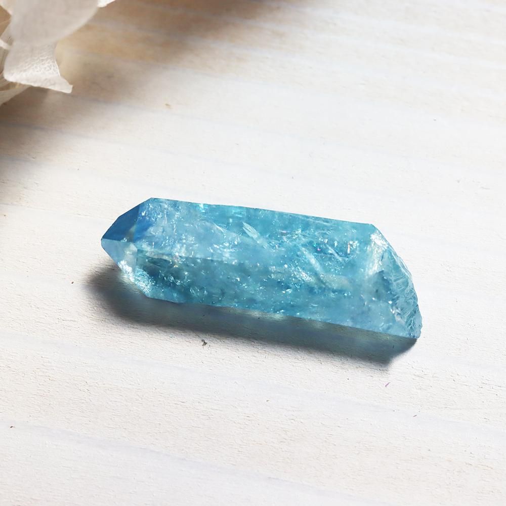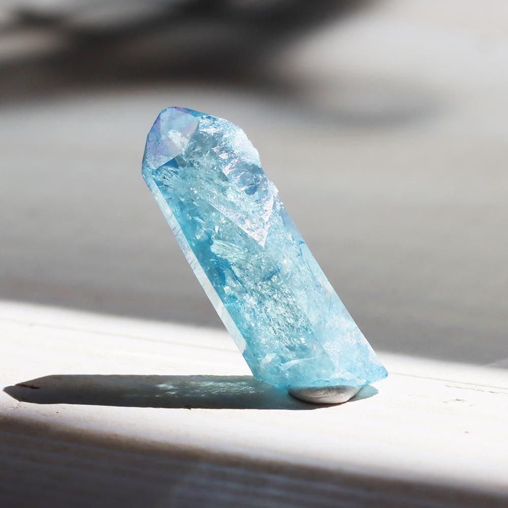 綺麗な青虹色の米国アーカンソー産アクアオーラクリスタルです。