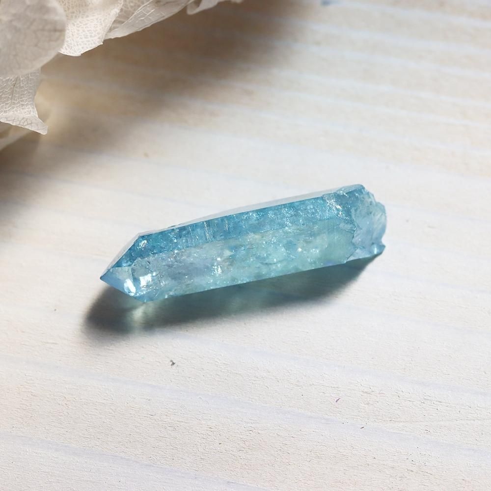 Aura crystals are created by artificially bonding precious metals such as gold, platinum, or titanium onto high-quality clear quartz in a vacuum at high temperatures.