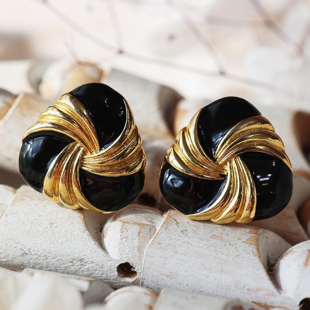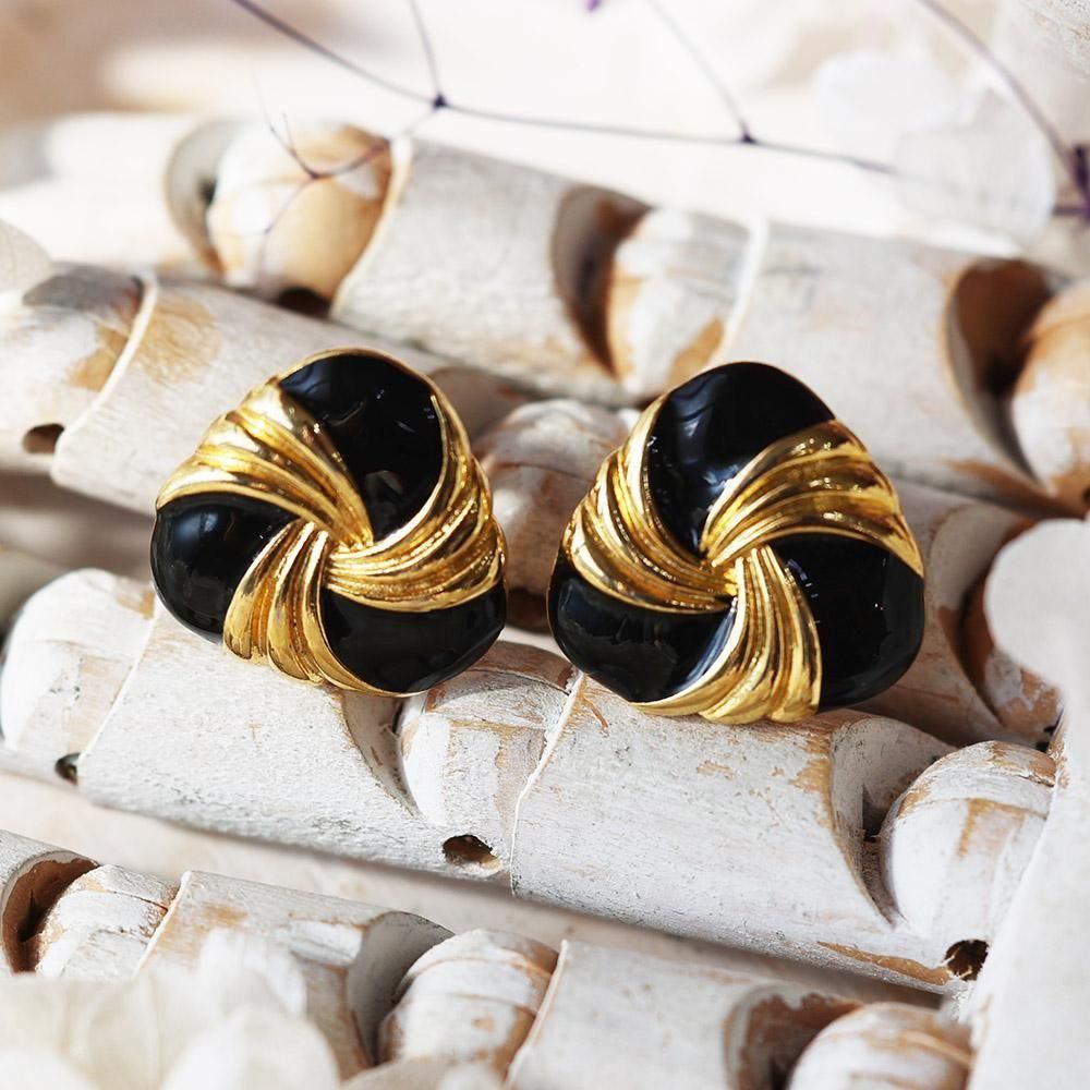 レトロ黒金イヤリング