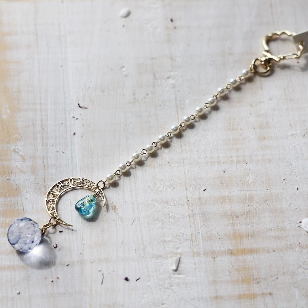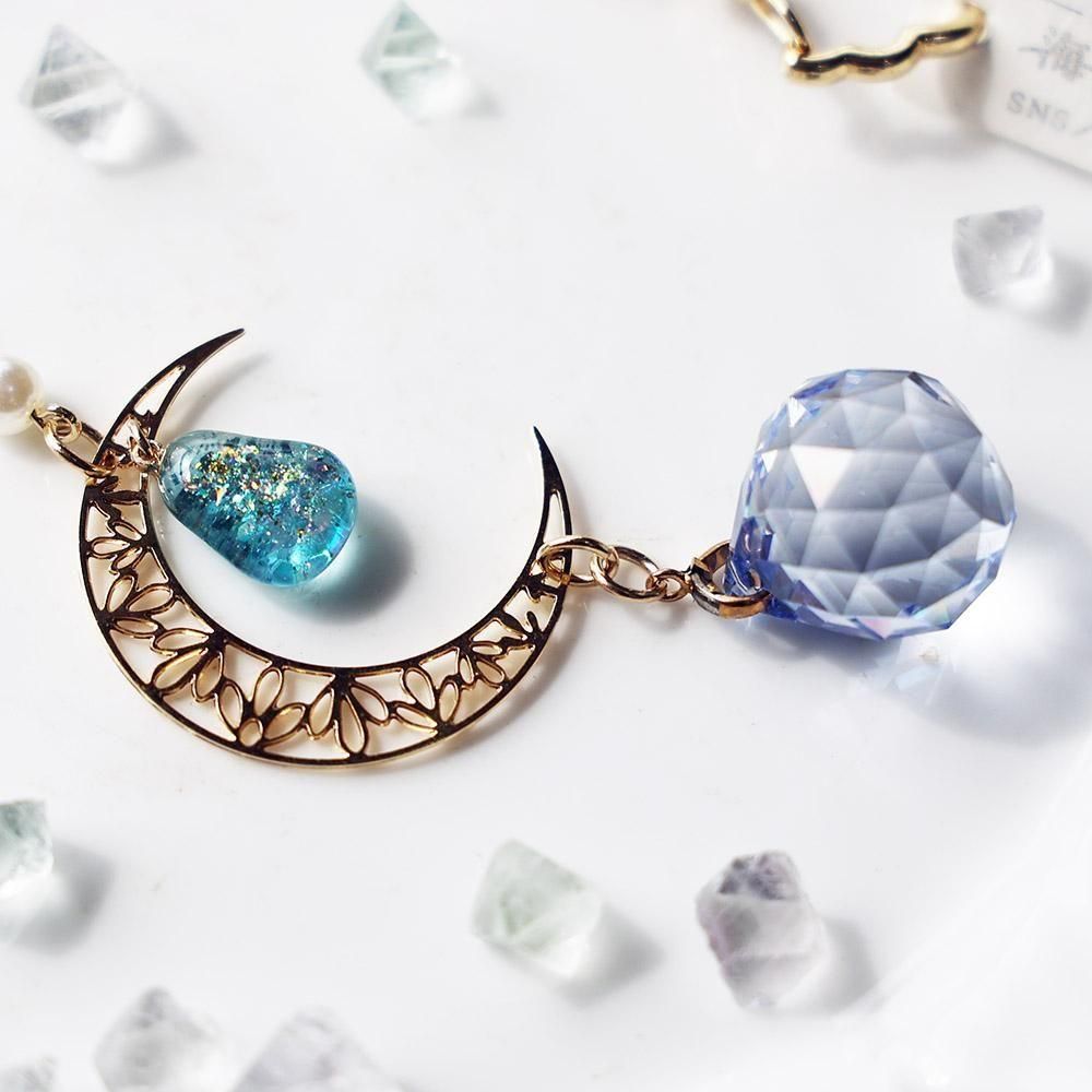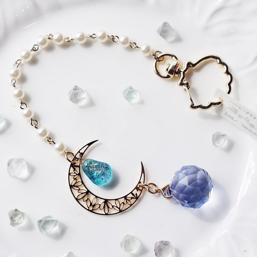 シーグラスと三日月、煌めく硝子ストーンのサンキャッチャーです。