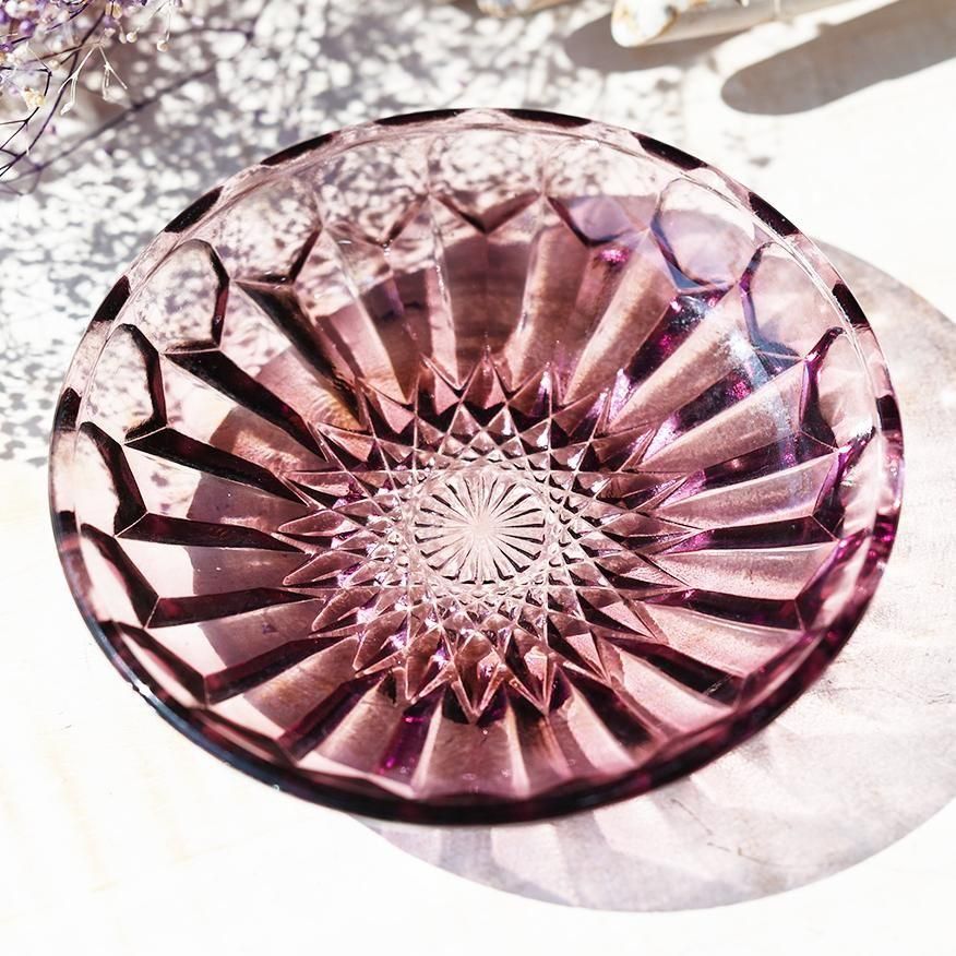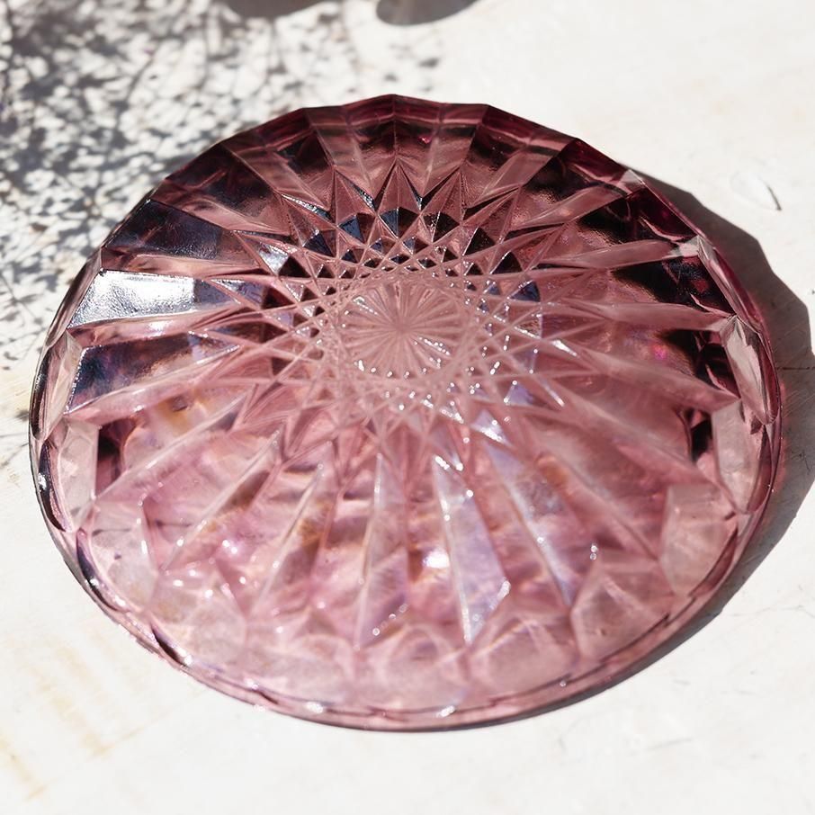 可愛い模様のカットガラスが素敵な、古い硝子皿です。