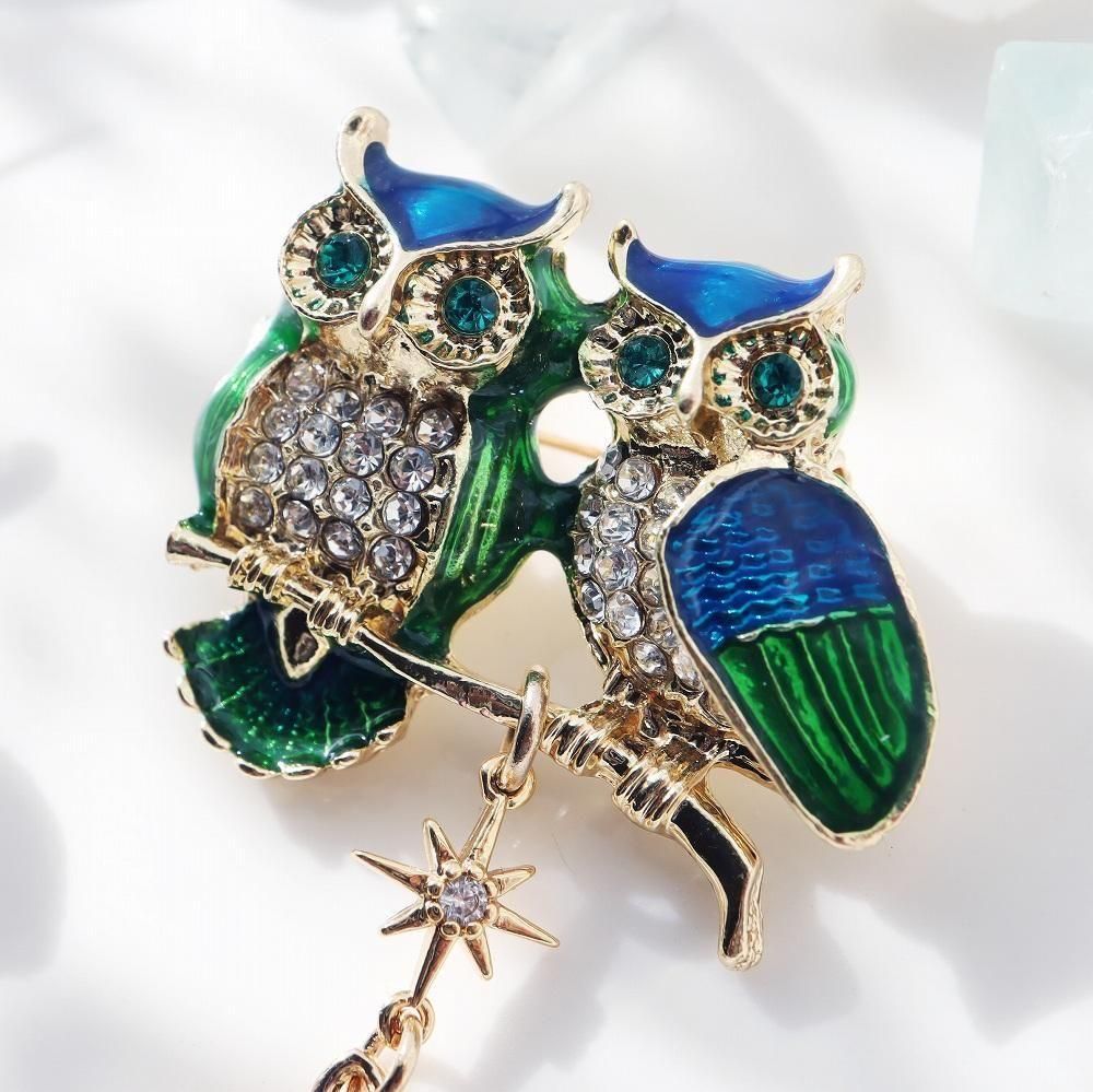 twin owl brooch