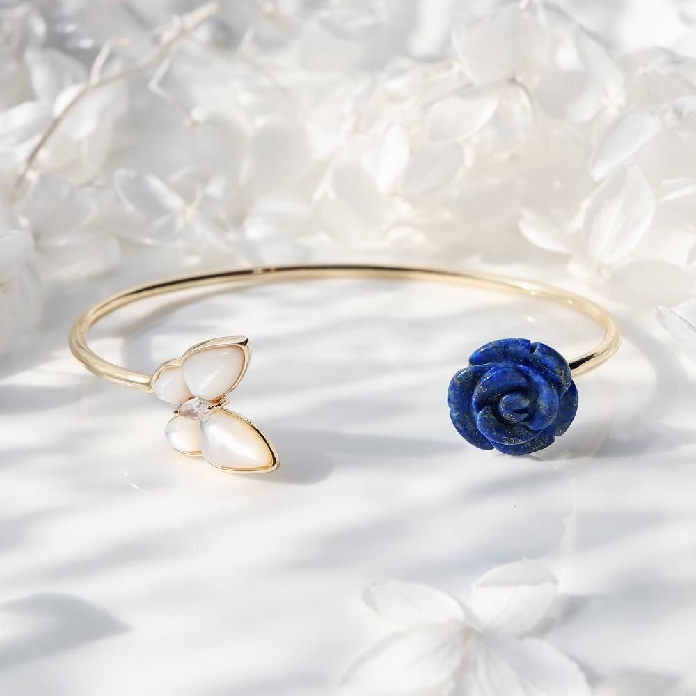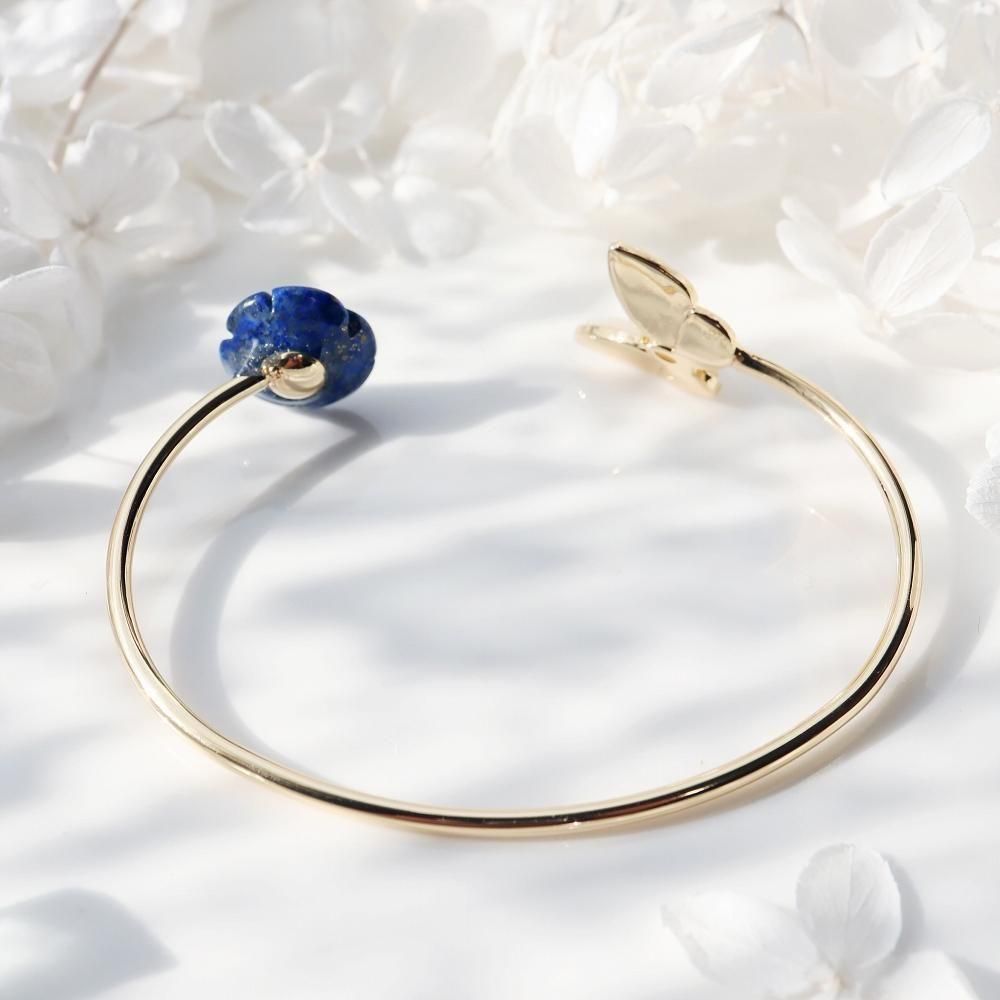 シェルの蝶とラピスラズリ(瑠璃)の薔薇のバングルです。