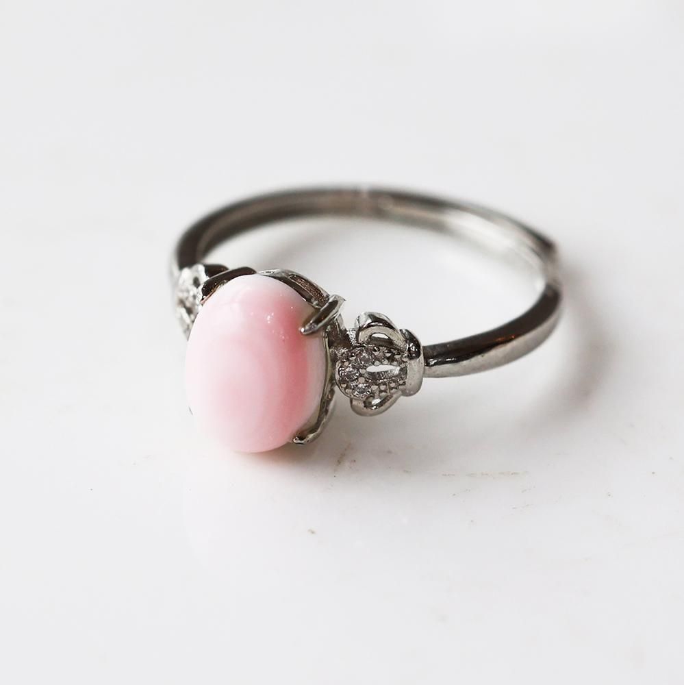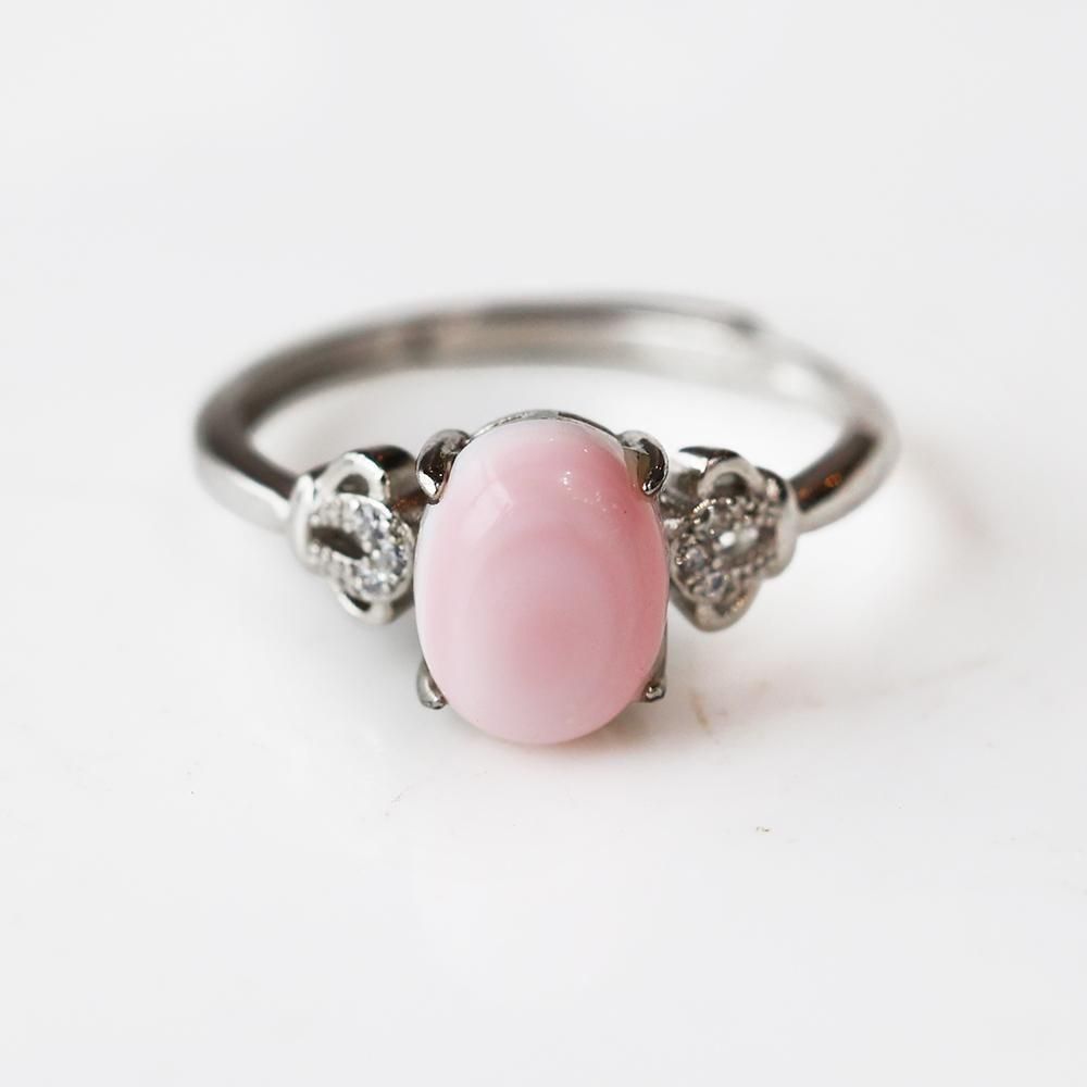 淡いピンク色がかわいい、クイーンコンクシェルの指輪です。
