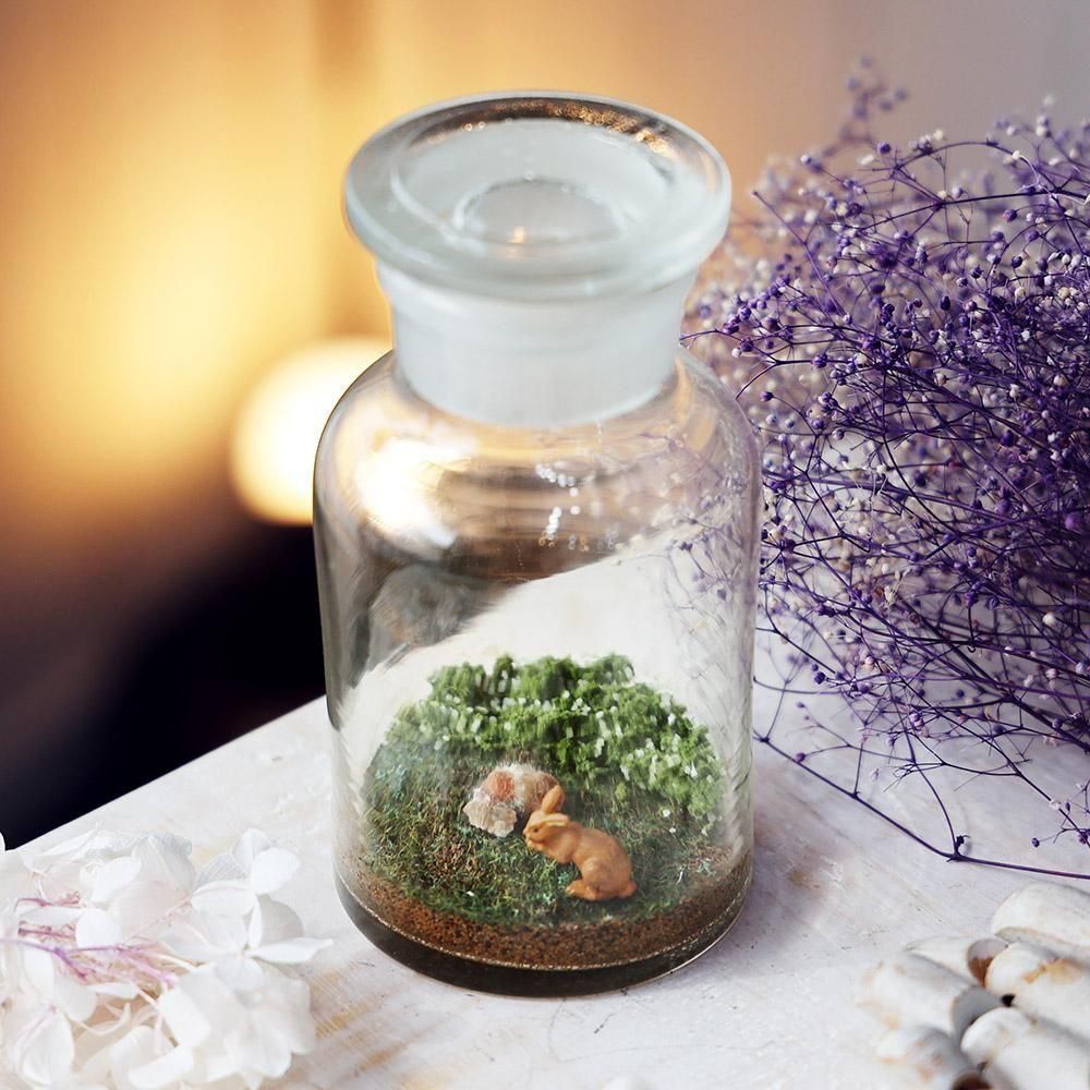 鉱物ジオラマ瓶(薬瓶・大)「森の兎」