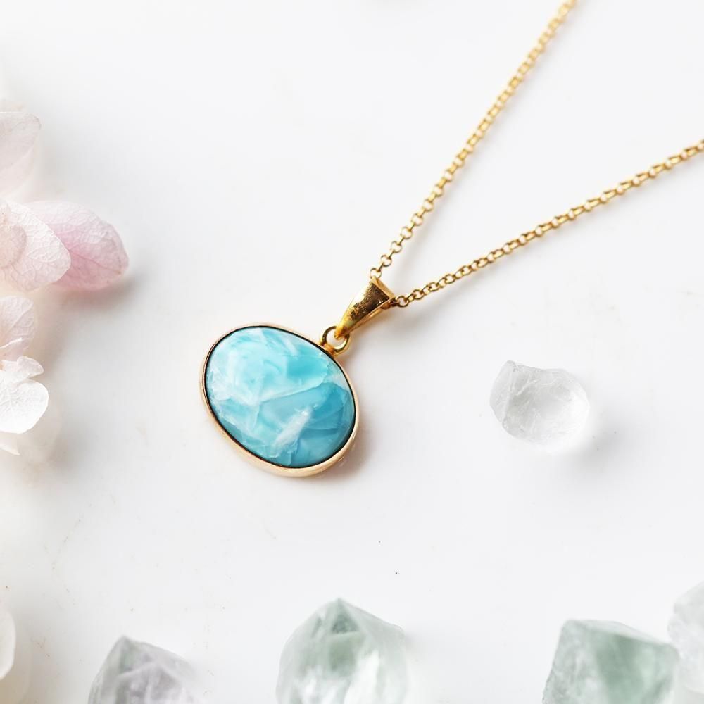 水色のドミニカ産ラリマーが使用されたネックレスです。