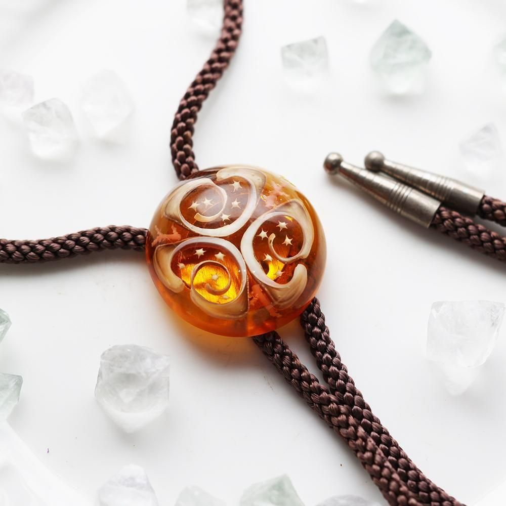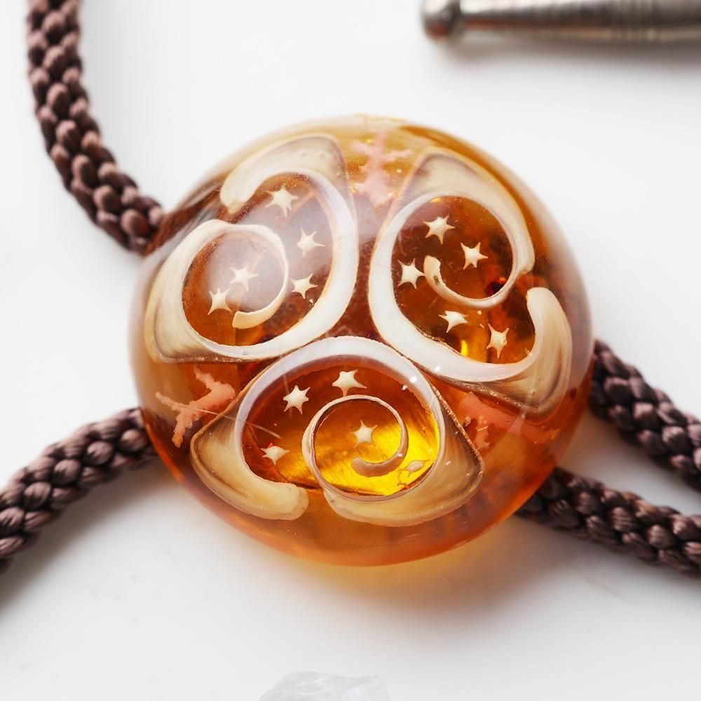 貝殻や珊瑚で表現された模様が可愛い、古い鼈甲ループタイです。