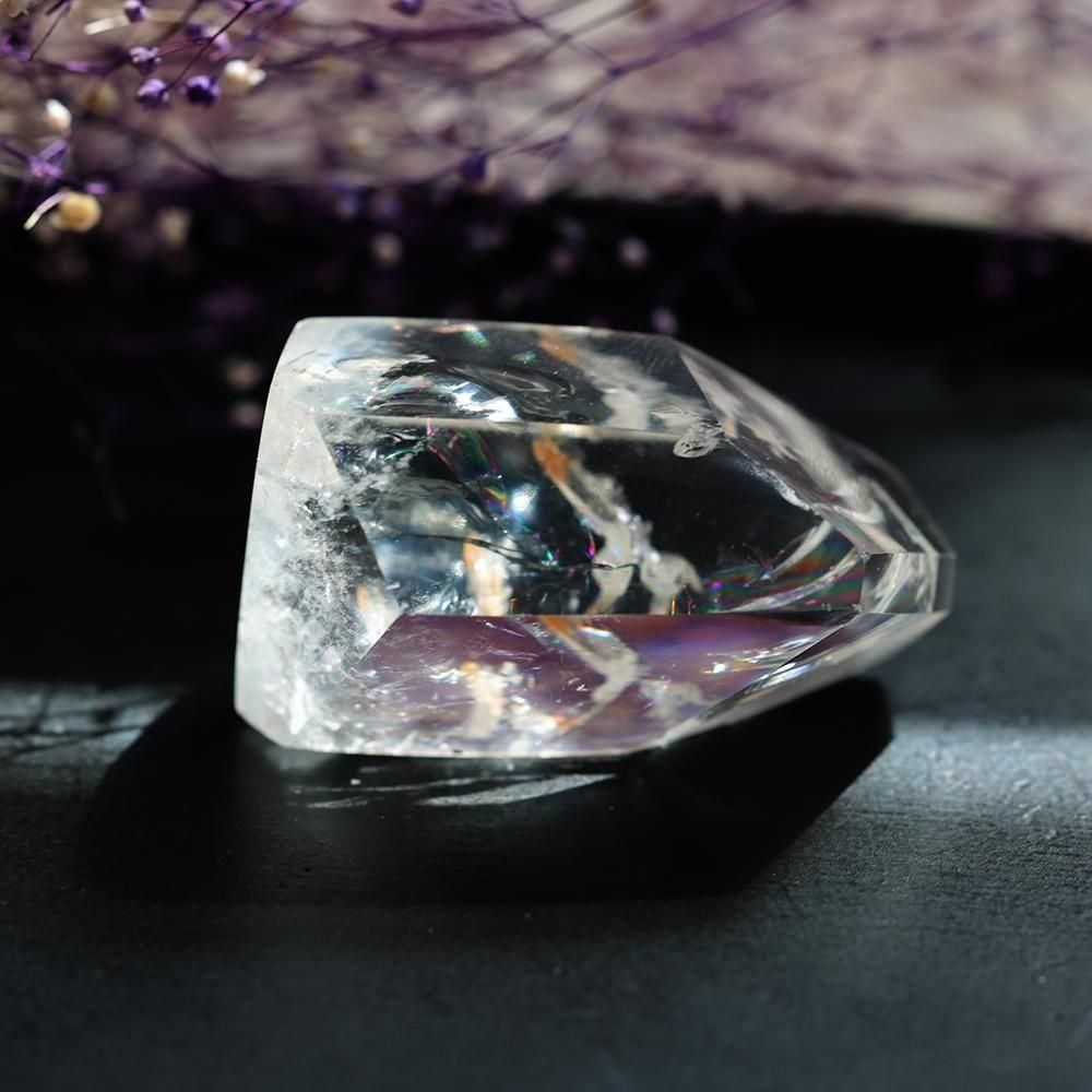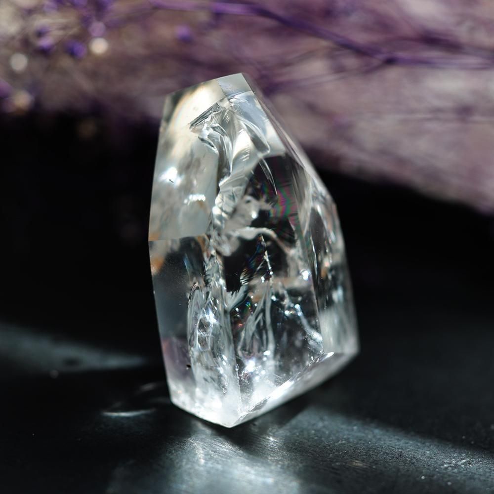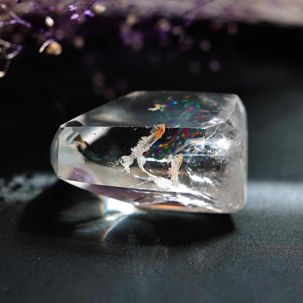 内部のクラックにより、光が当たると綺麗な虹が見られます。