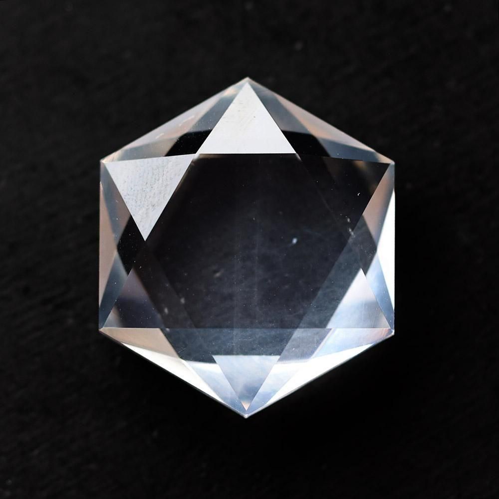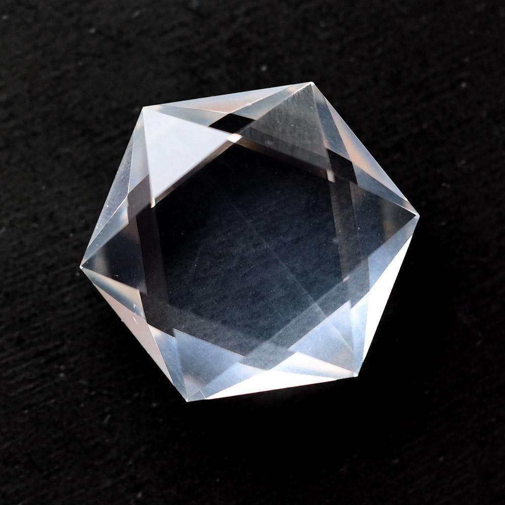 A finely cut and polished hexagonal clear quartz from Brazil with excellent transparency.