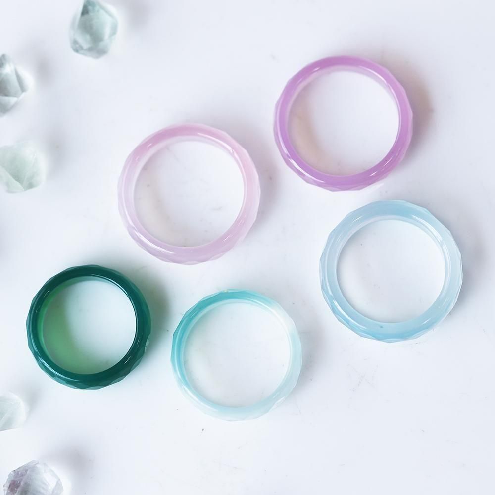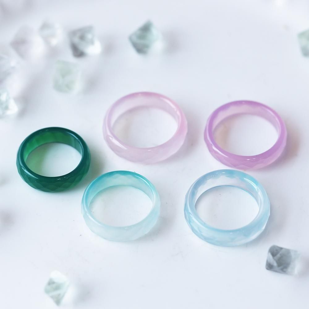 綺麗な色合いに染色された瑪瑙の指輪5個セットです。