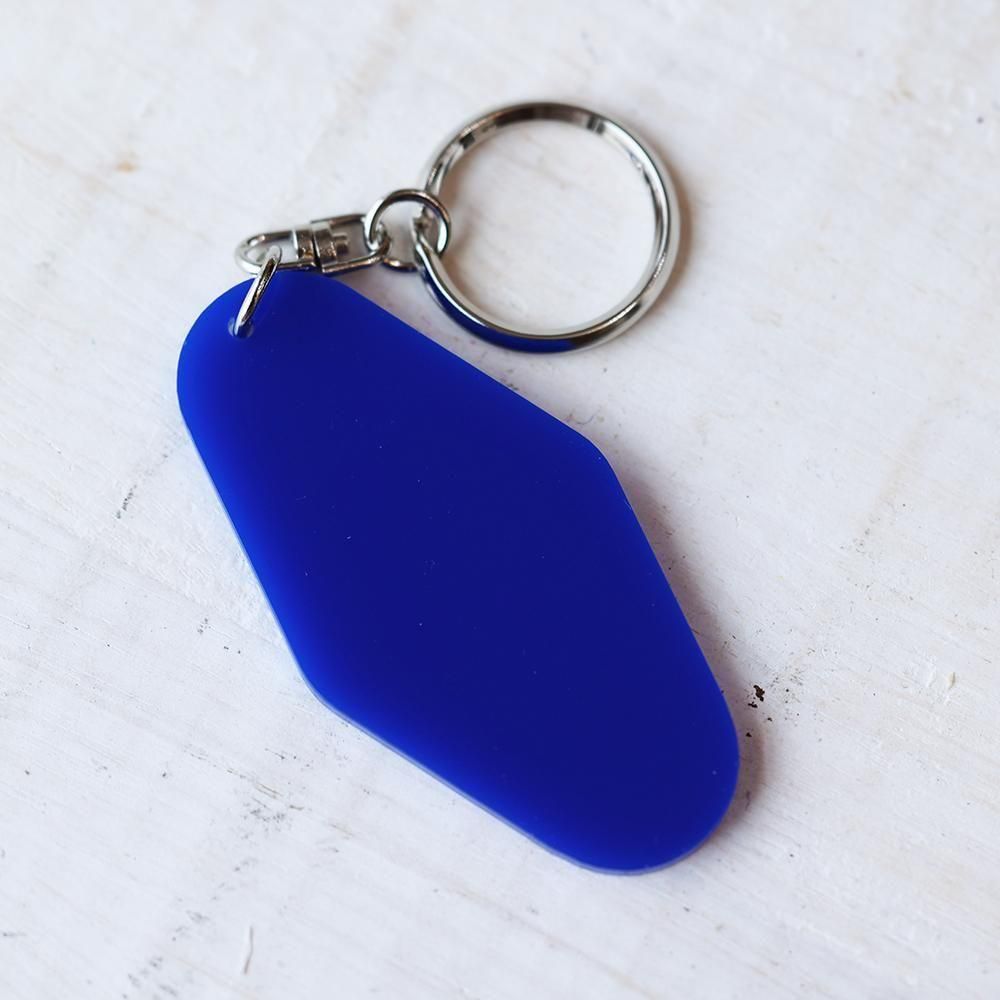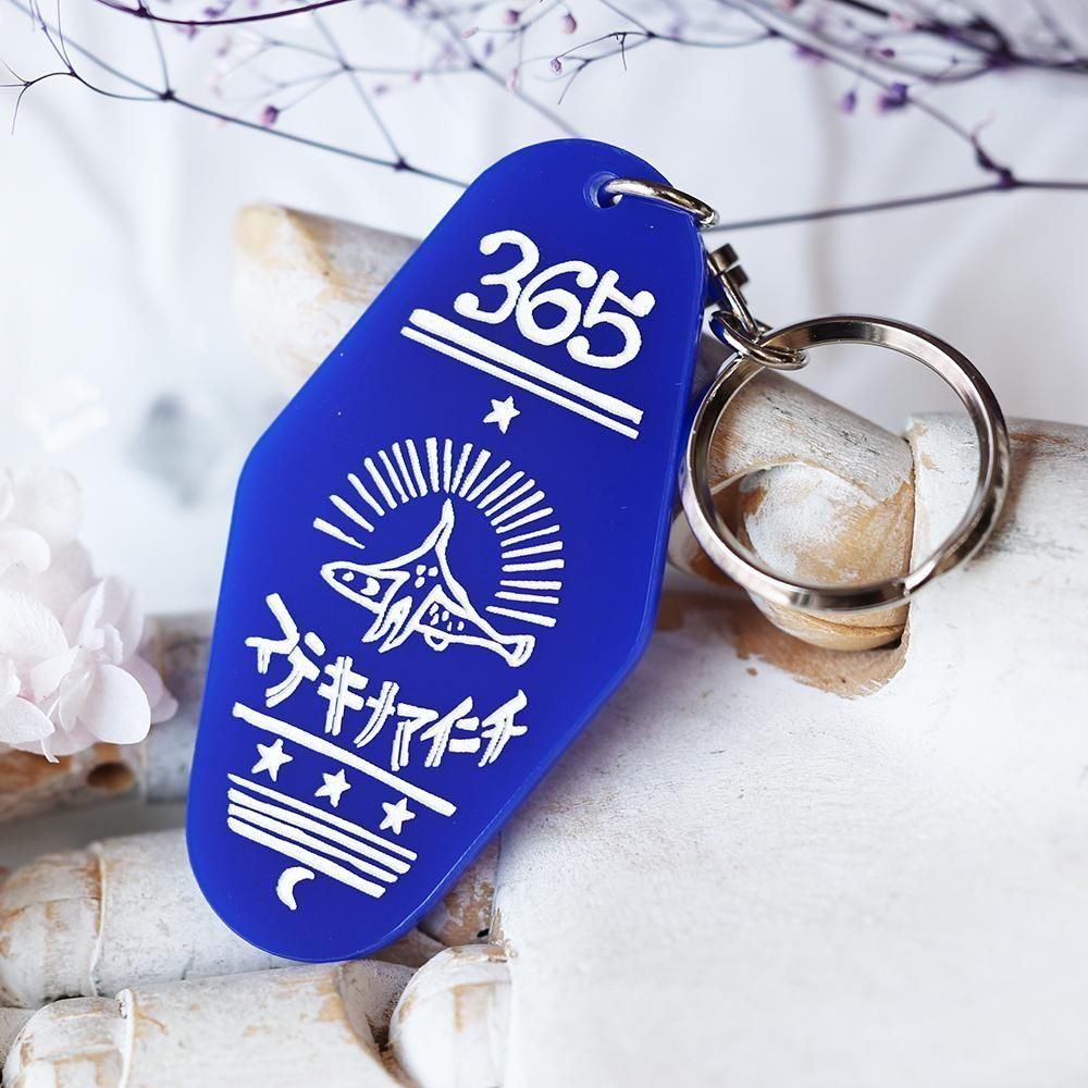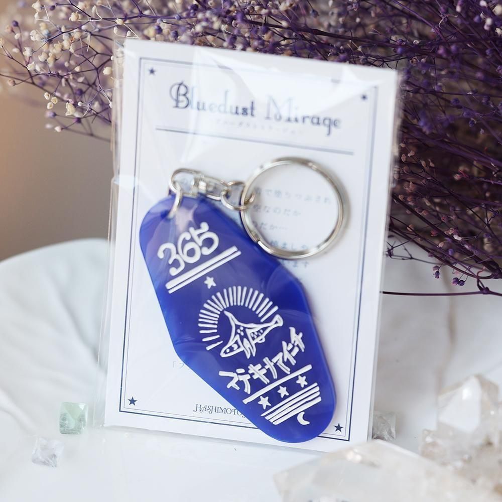 A retro-cute motel keychain from Hiromi Hashimoto’s Bluedust Mirage series, featuring the “Wonderful Everyday” design.