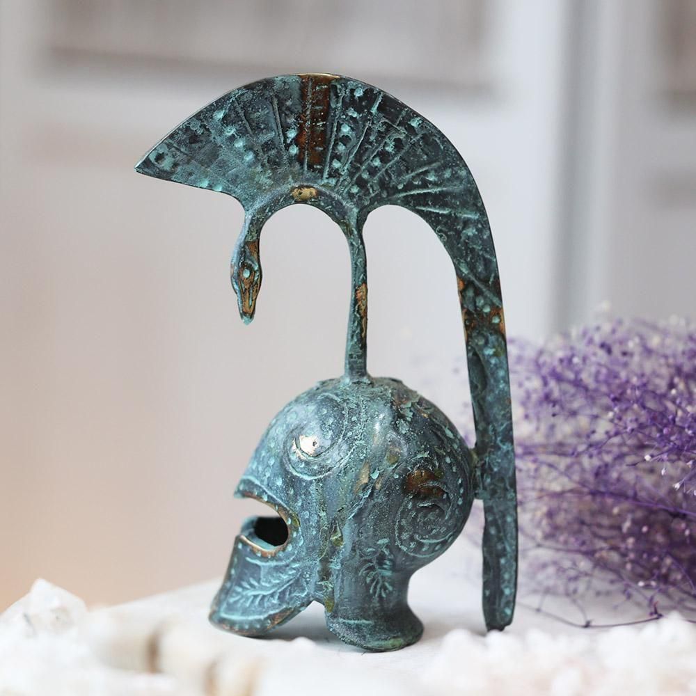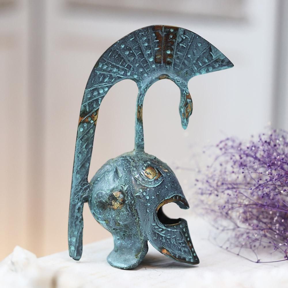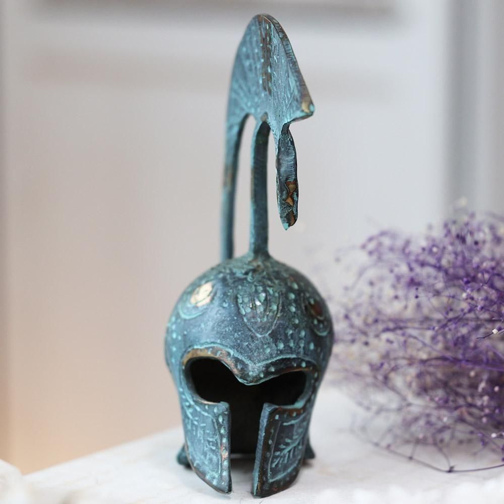 A bronze paperweight with a charming design inspired by an ancient Roman-style helmet.