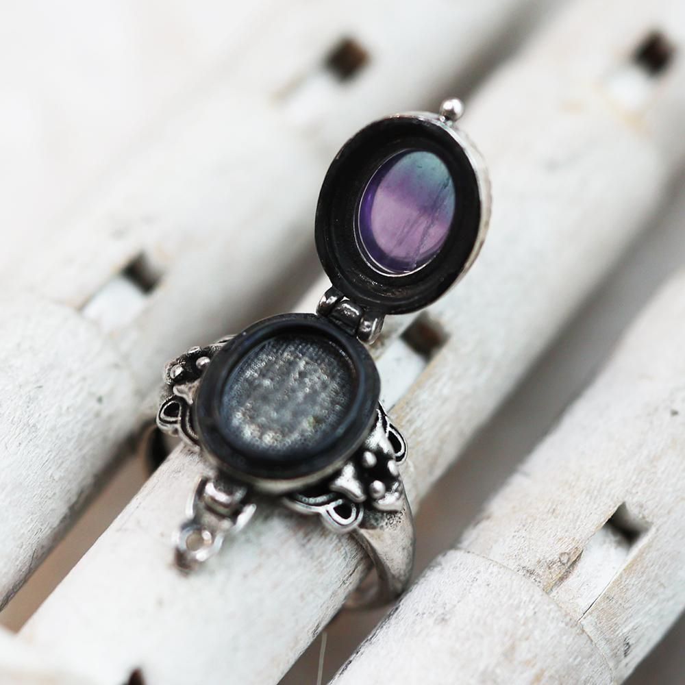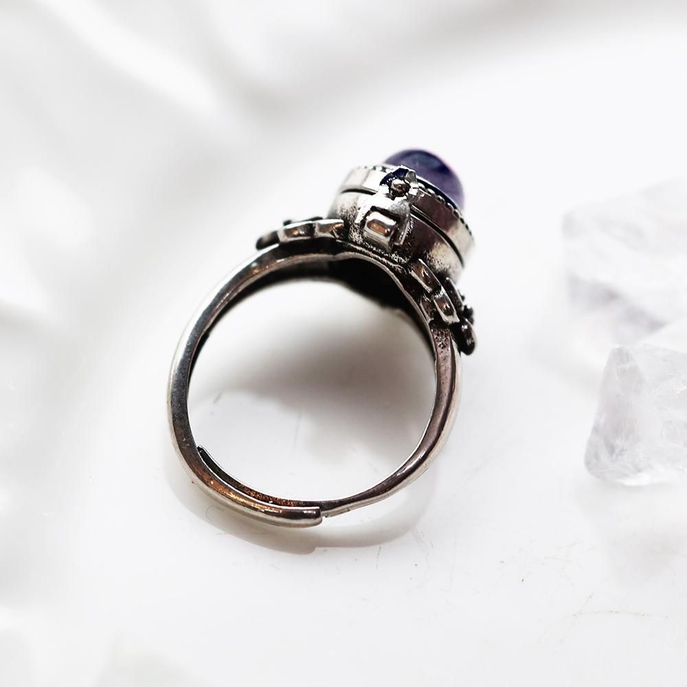 綺麗なピンク色のフローライトがあしらわれた、ロケットリングです。