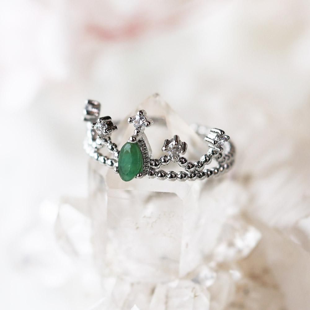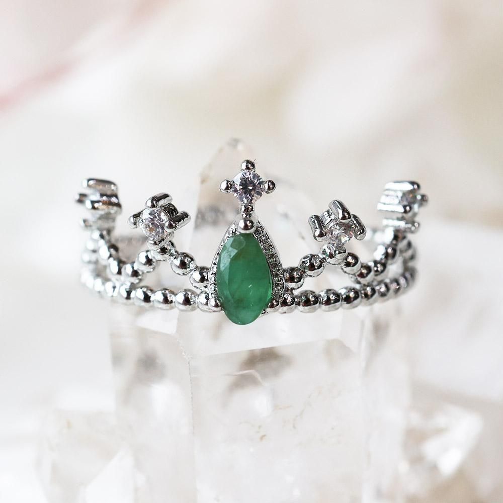 華奢な王冠のデザインが素敵な、エメラルドの指輪です。