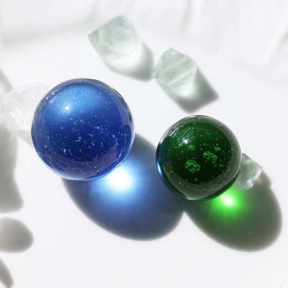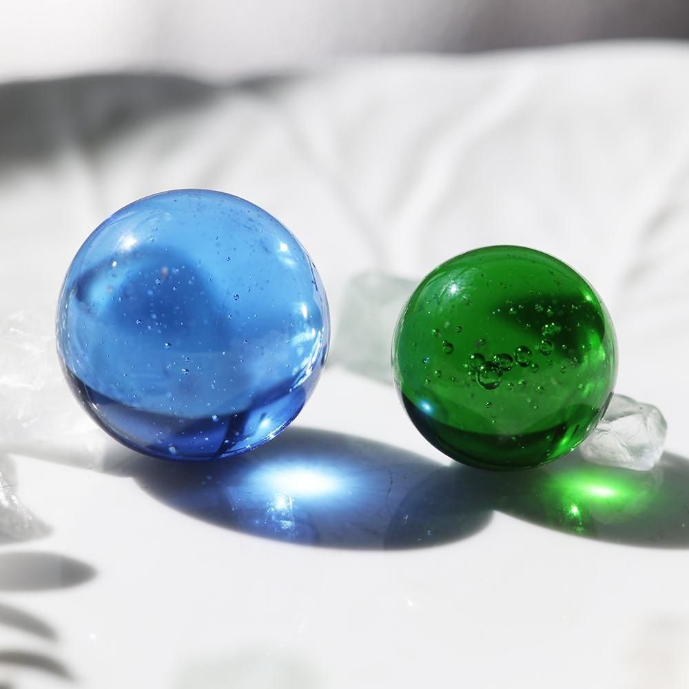 綺麗な青と緑の、やや大きめな古いビー玉2個セットです。