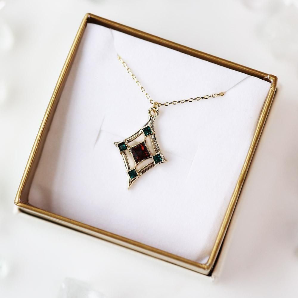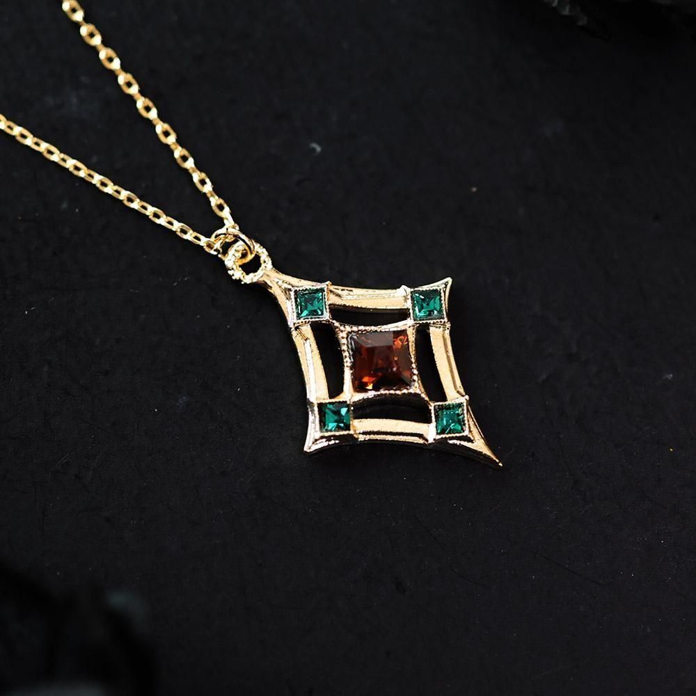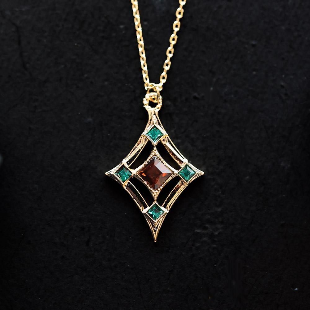 光石シリーズネックレス「カラールフレ・金×茶緑」