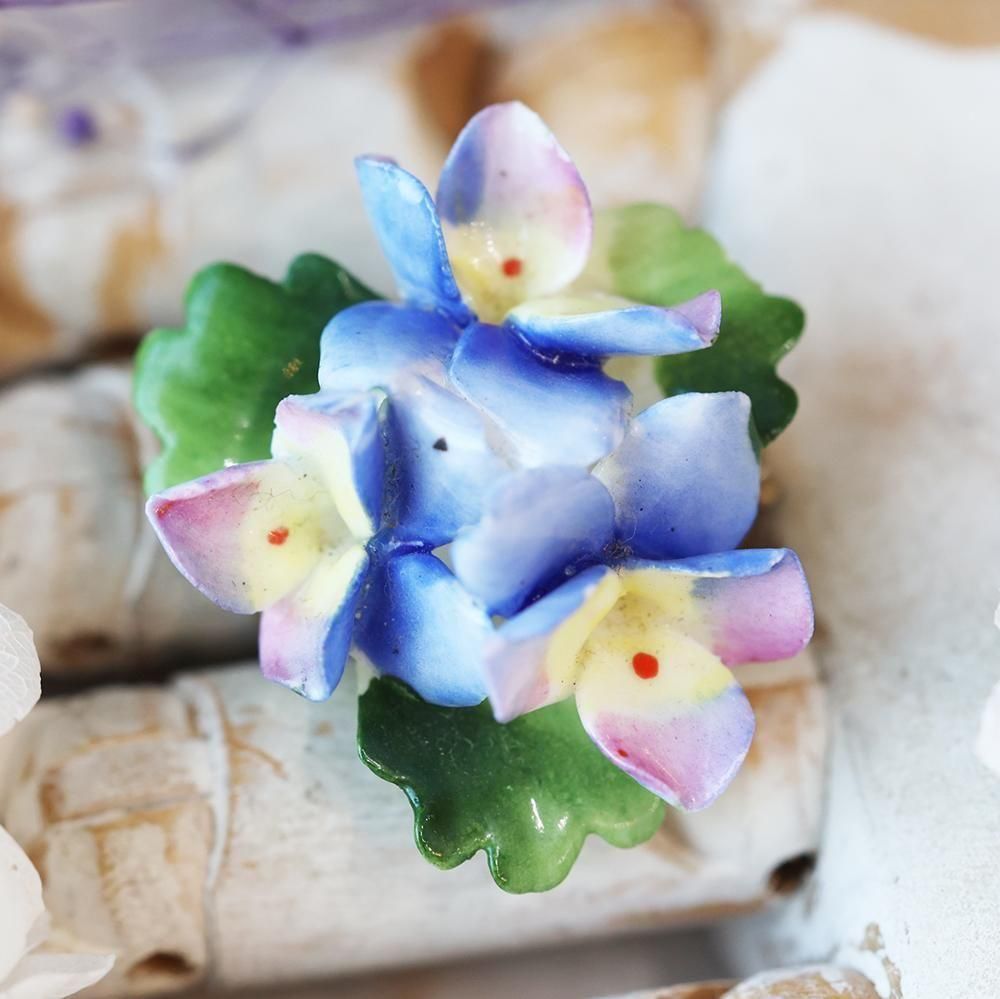 淡い色合いが可愛い、お花のデザインの陶ブローチです。