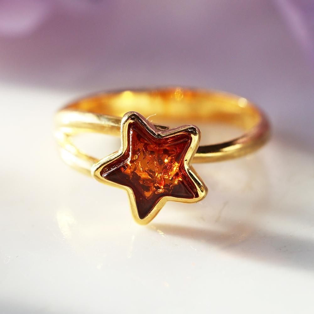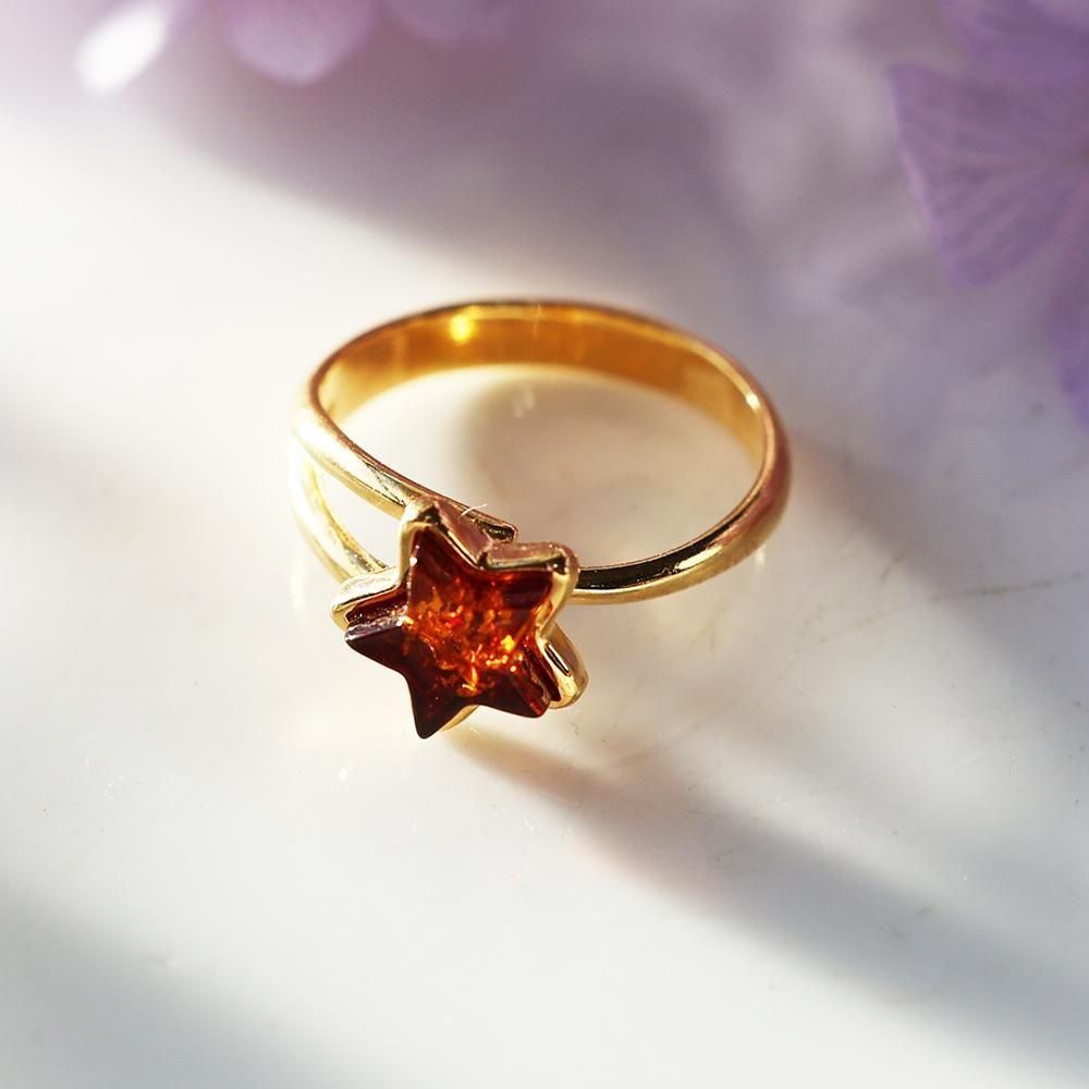 星のデザインが可愛い、ポーランド産琥珀の指輪です。