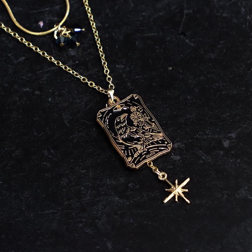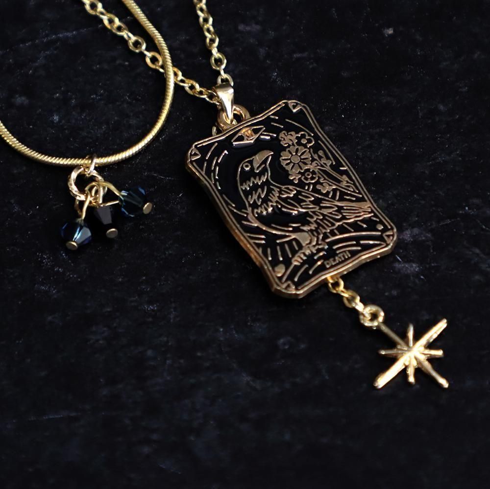 黒とゴールドのデザインが素敵なタロットカードのネックレスです。