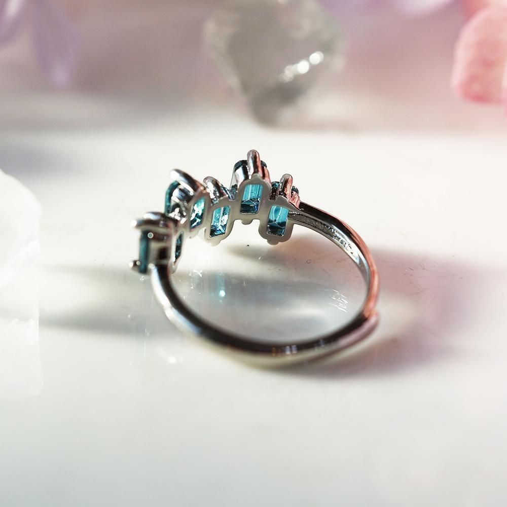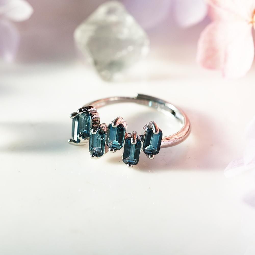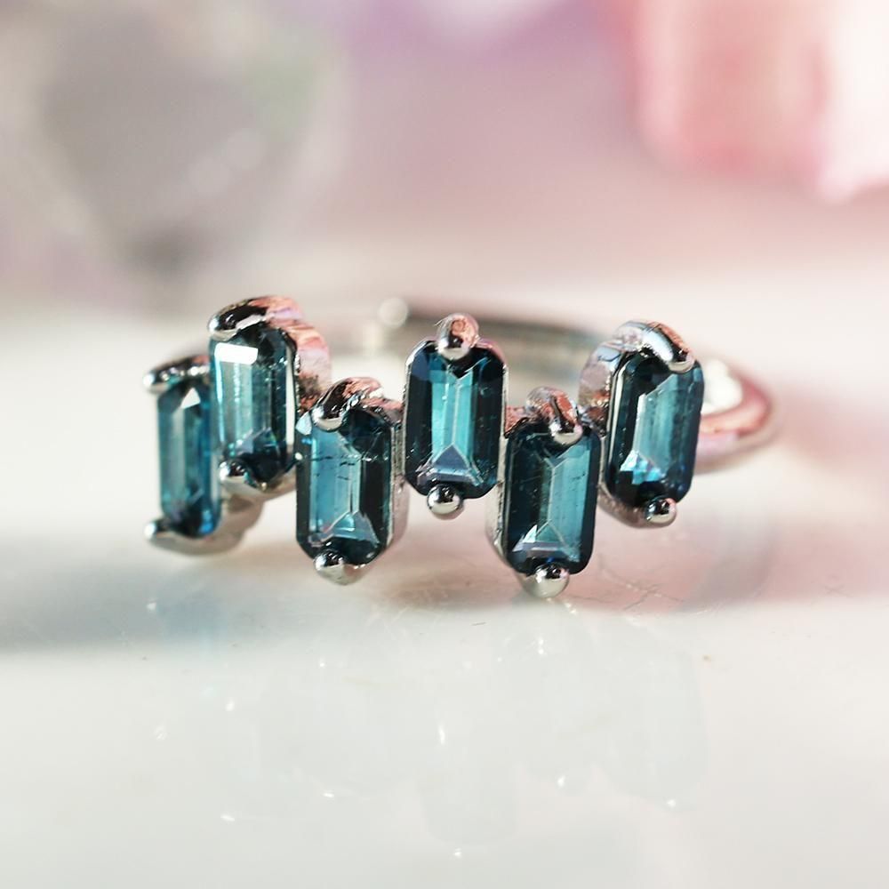 6粒のロンドンブルートパーズがあしらわれた指輪です。