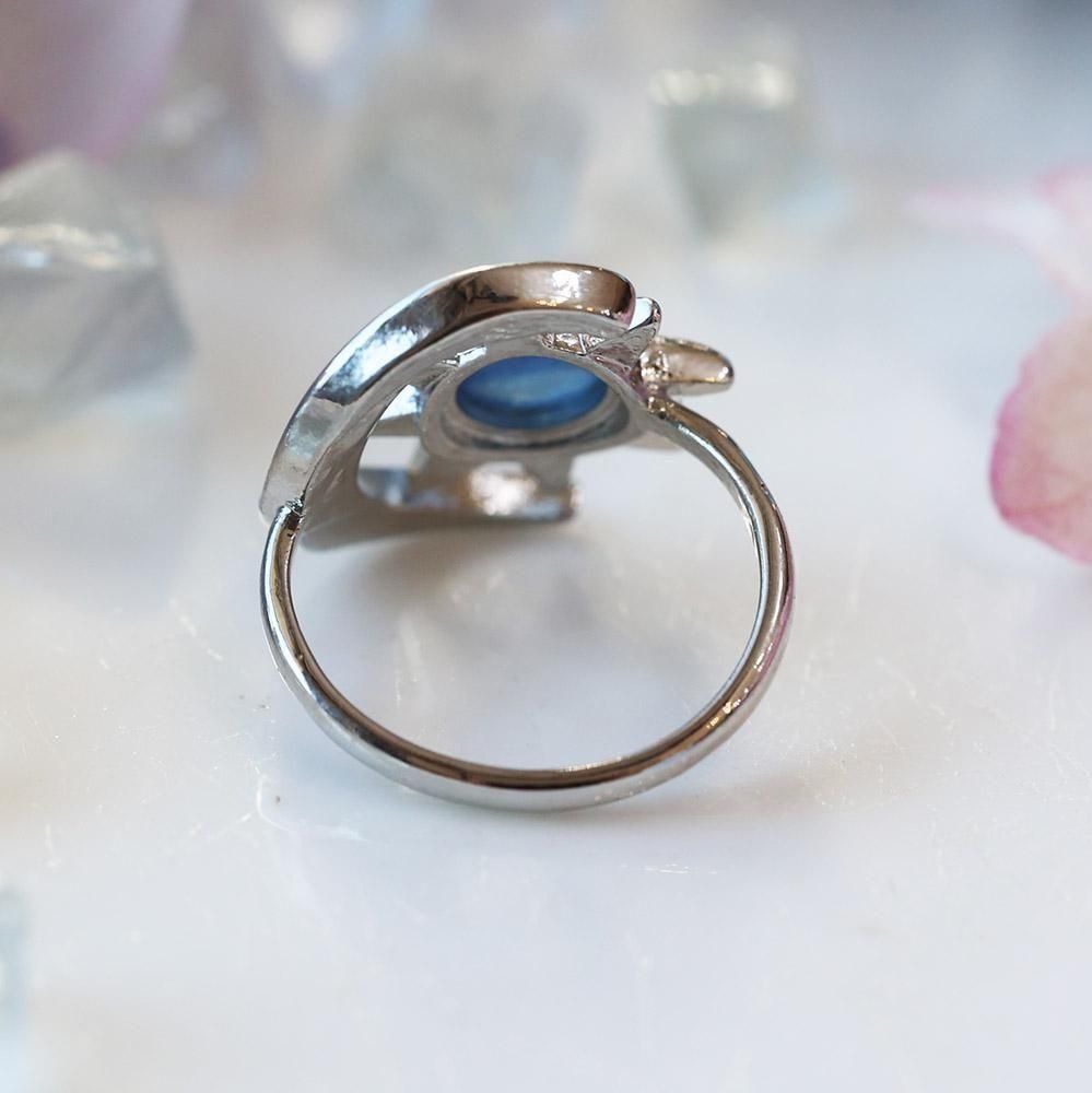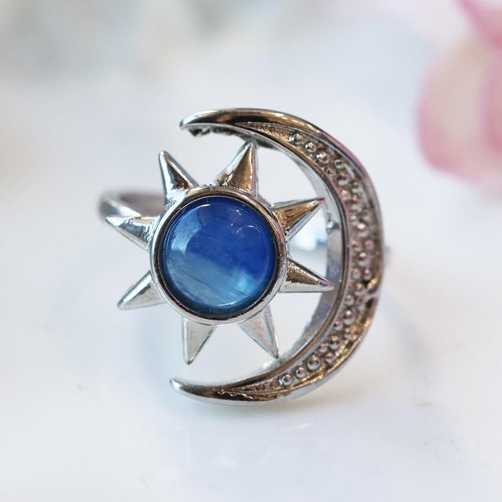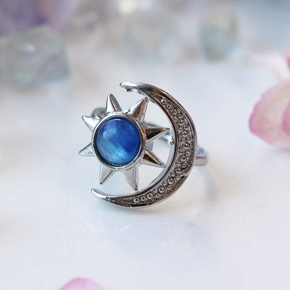 綺麗なブルーのカイヤナイトが素敵な、太陽と月の指輪です。