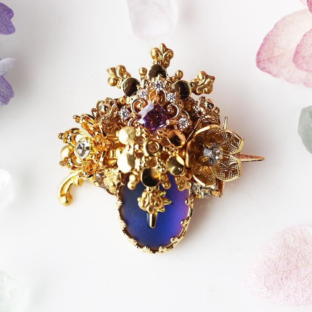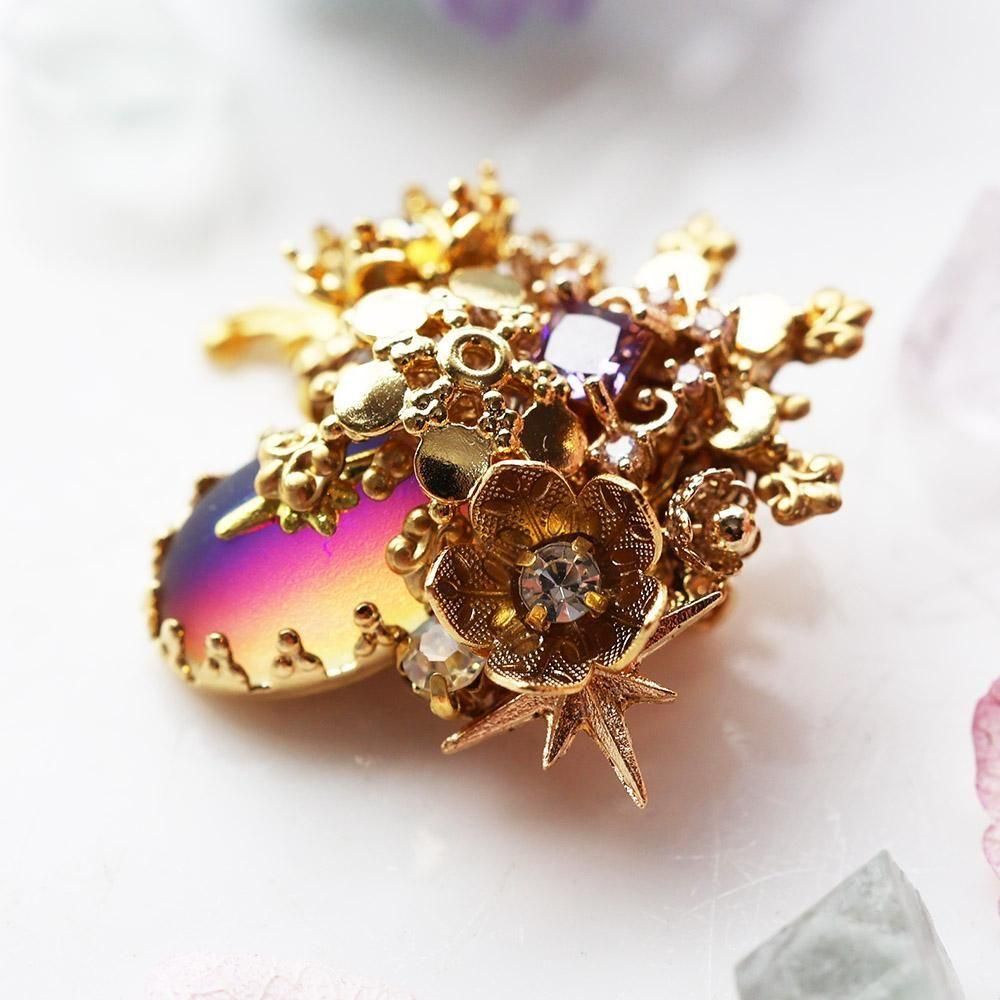 角度によって青から紫や朱、黄色のカラーが楽しめる硝子カボション
