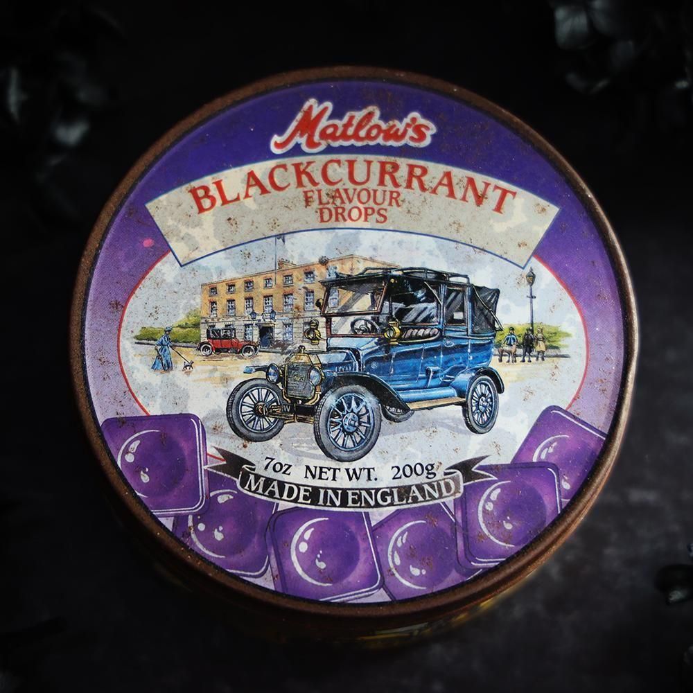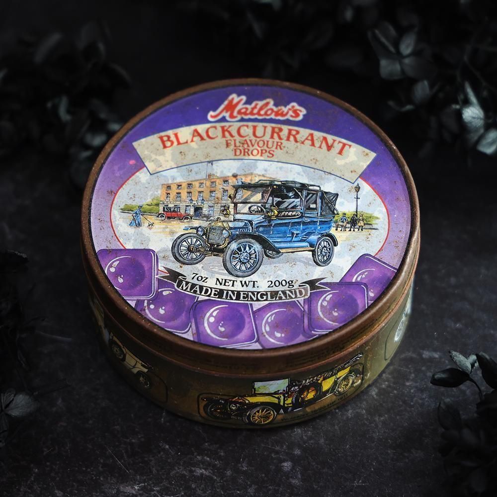 古いキャンディ缶「Matlow’s BLACKCURRANT FLAVOUR DROPS」