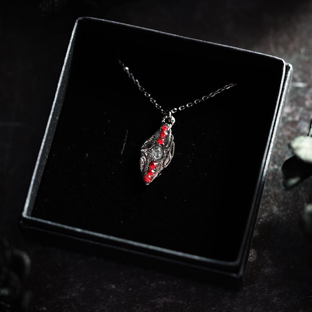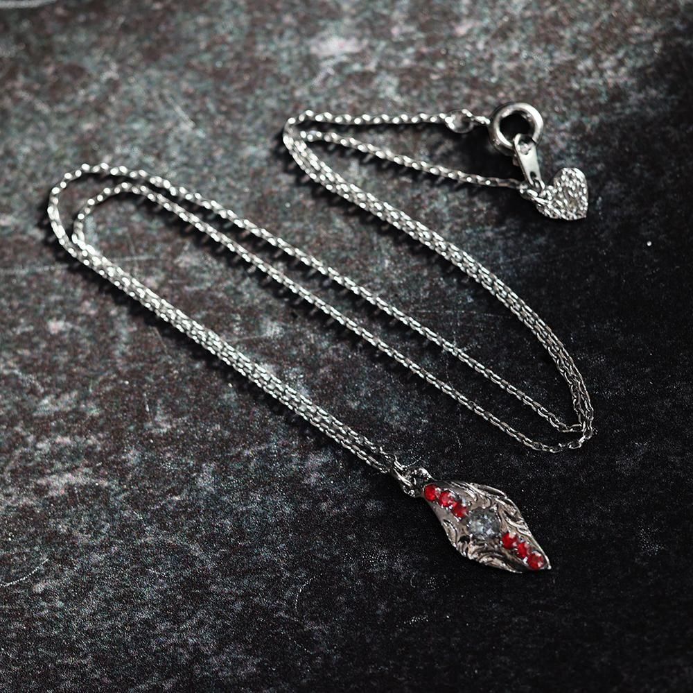 模様の刻まれた石のようなデザインが素敵なネックレスです。