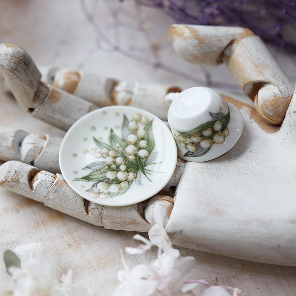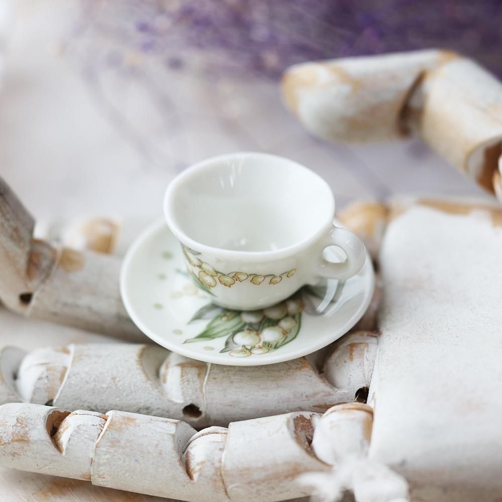 かわいいミニチュアサイズのカップとソーサーのセットです。