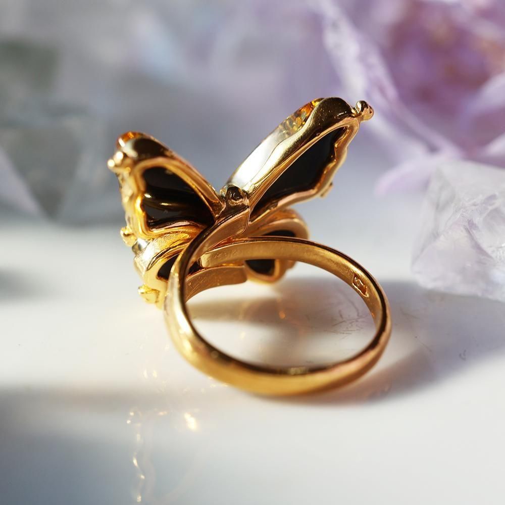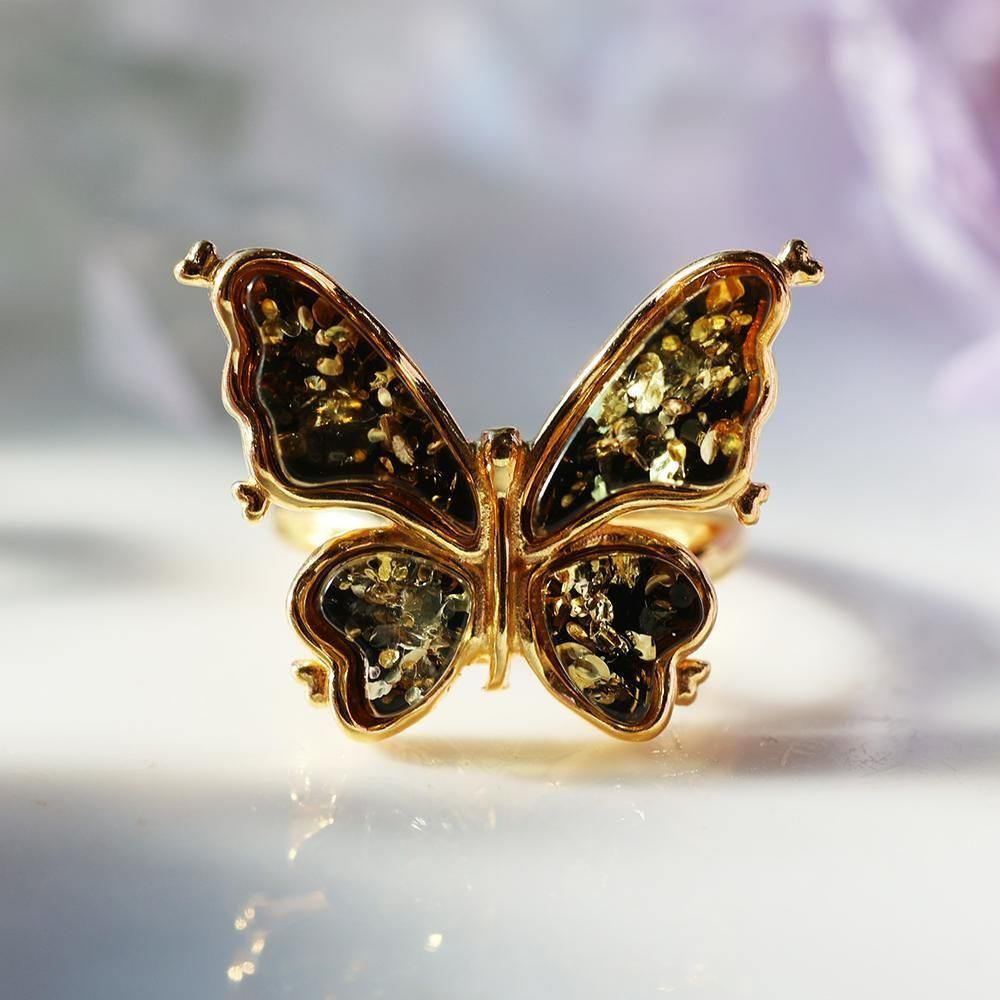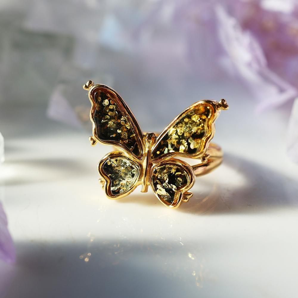 蝶々のデザインが可愛い、ポーランド産琥珀の指輪です。