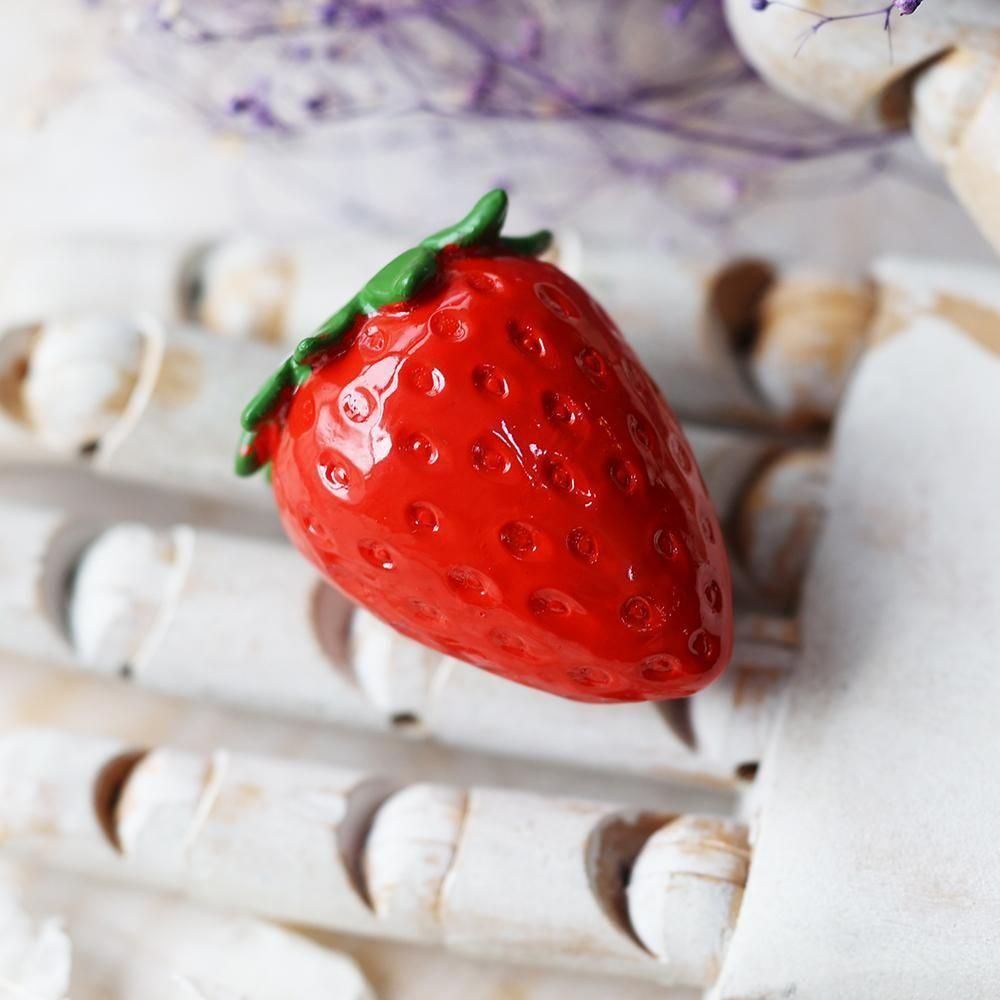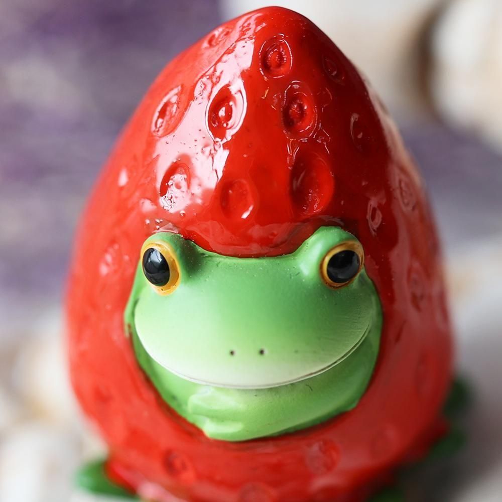 イチゴの中から顔を出す、小さなカエルの樹脂製オブジェです。