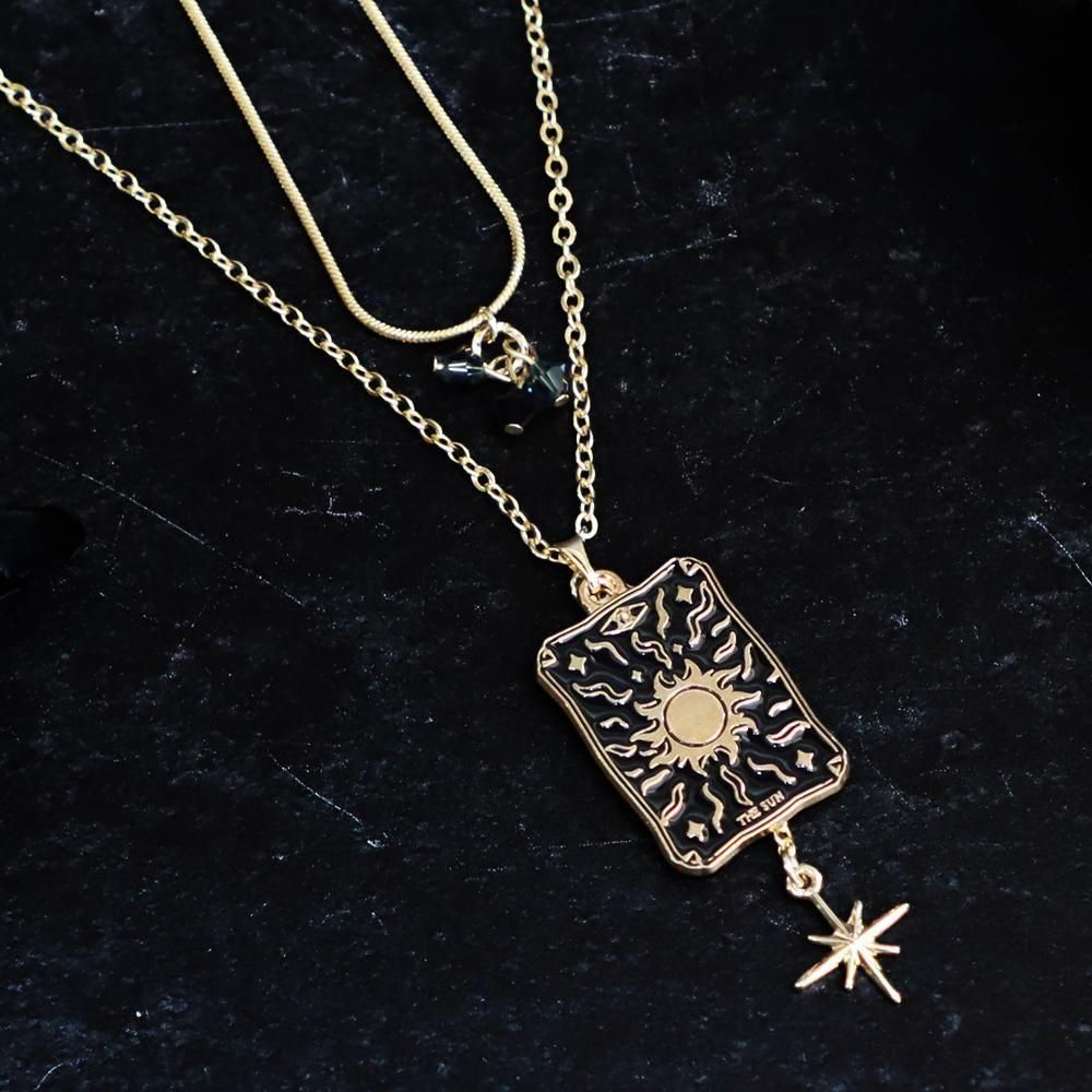 黒とゴールドのデザインが素敵なタロットカードのネックレスです。