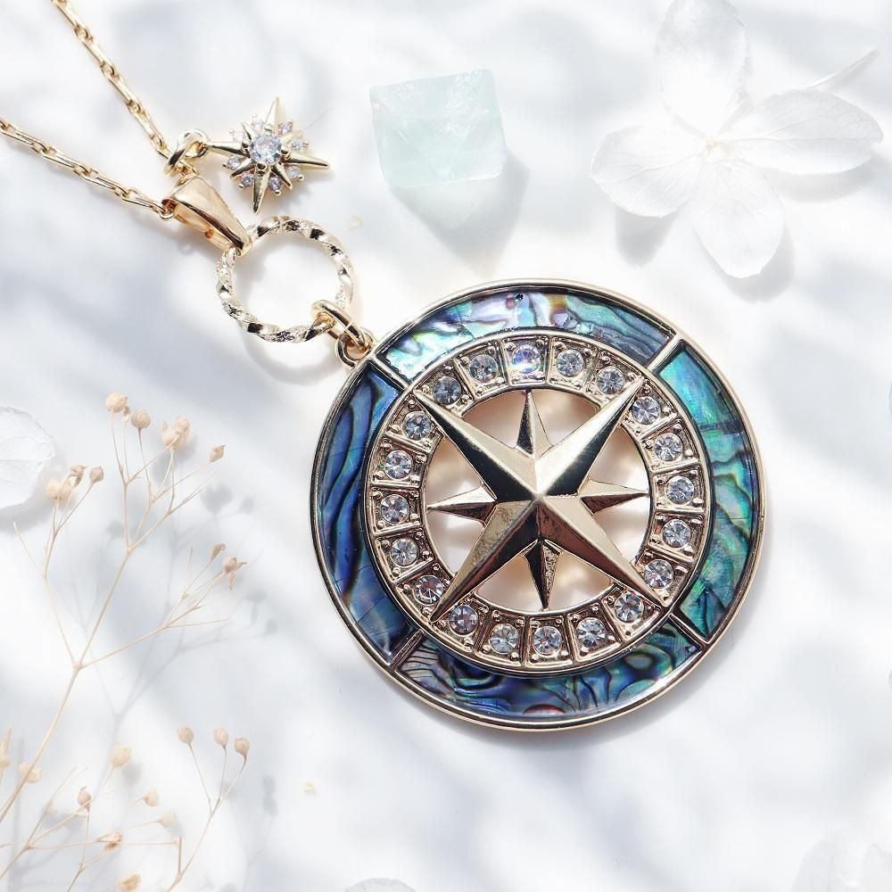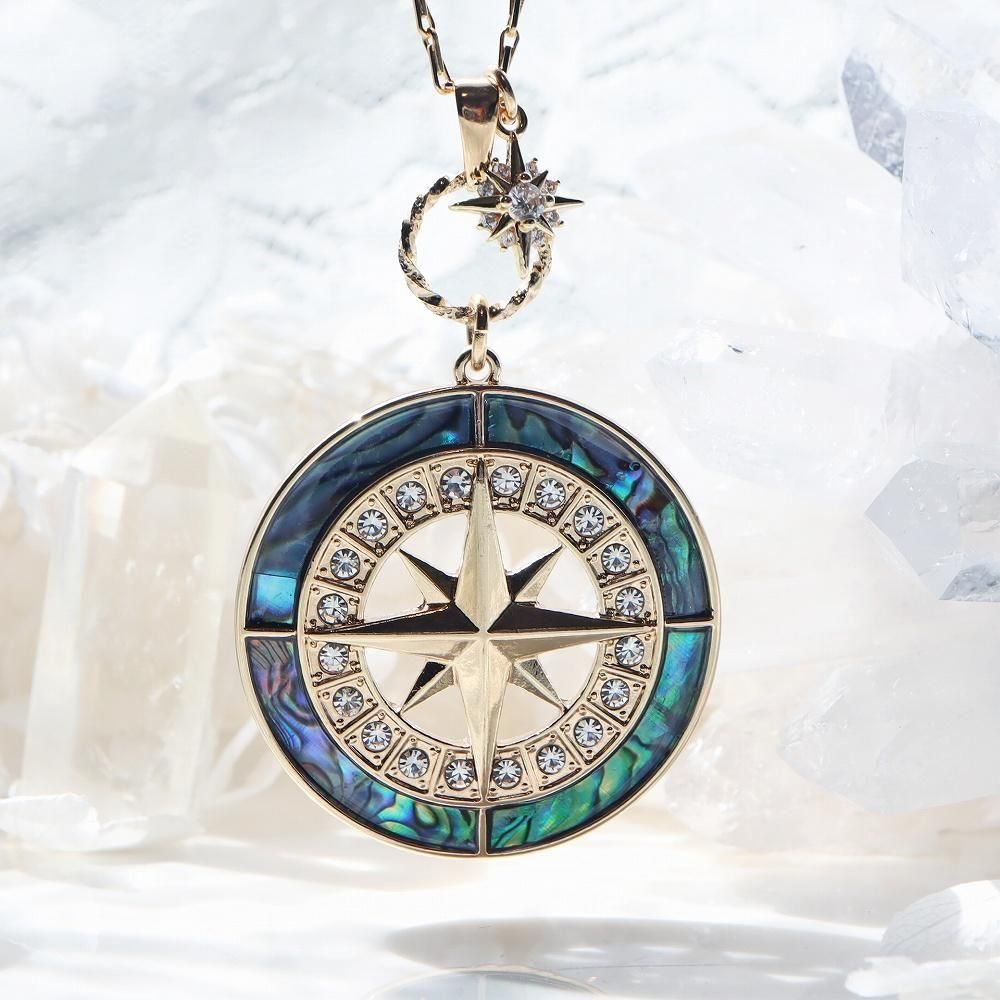 大ぶりなアヴァロンシェルのチャームが揺れるネックレスです。