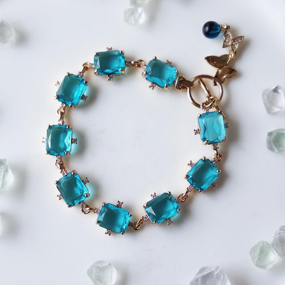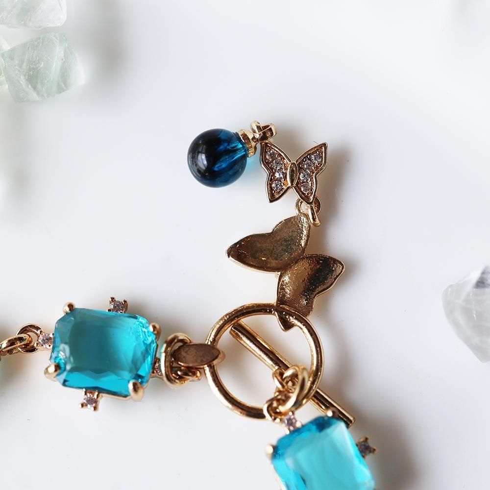綺麗な水色の硝子ビーズを使用したブレスレットです。
