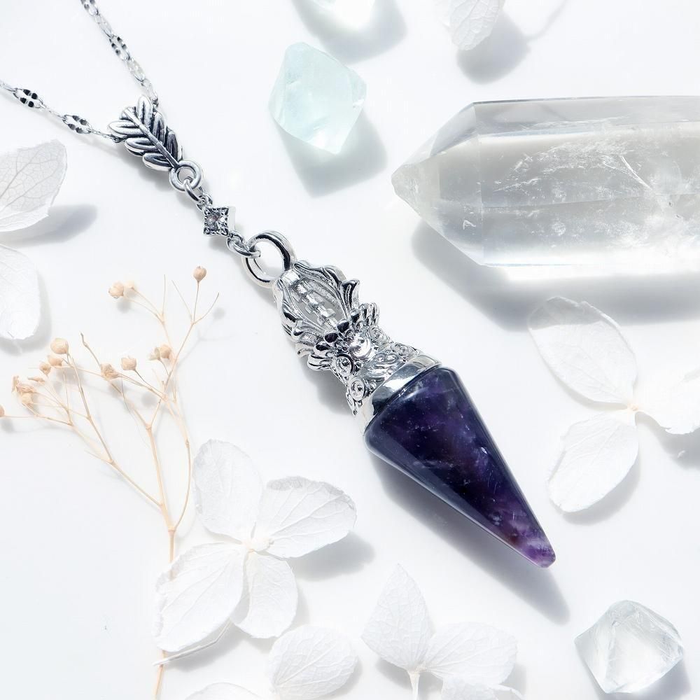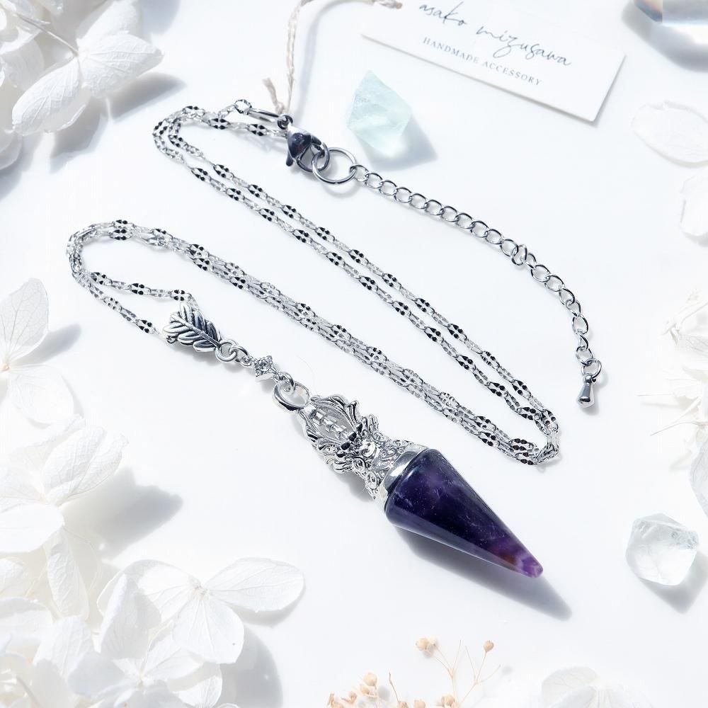 円錐型アメジストのネックレスです。